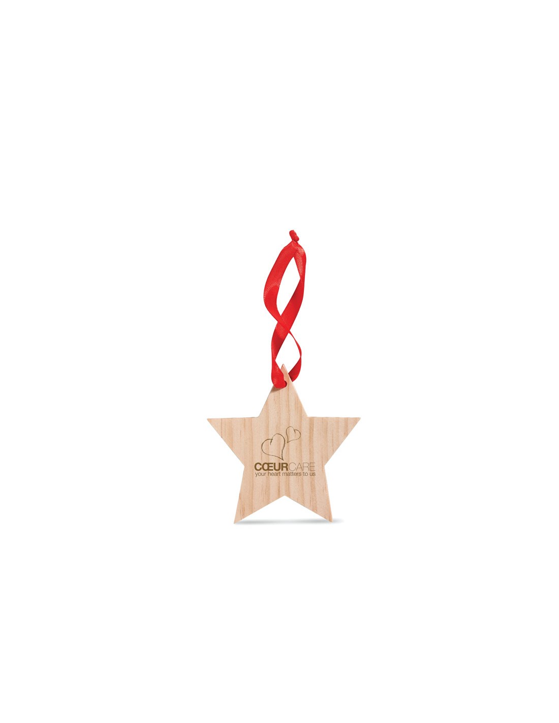 Estrella de madera con cinta roja para colgar en el árbol de Navidad.