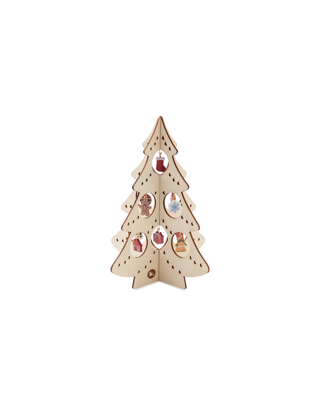 Adorno decorativo con forma de árbol de Navidad de madera contrachapada y 10 adornos variados. Requiere montaje.