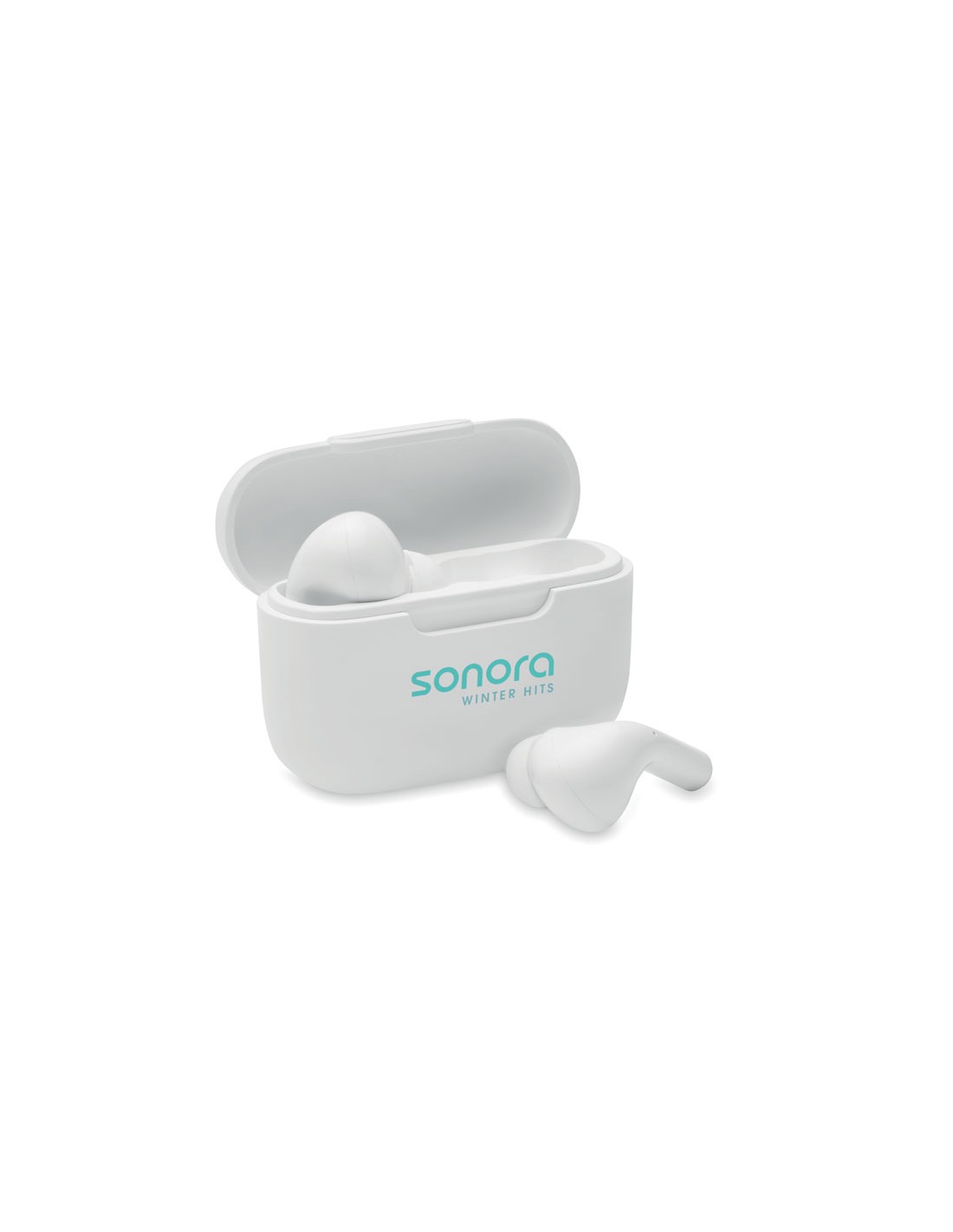 Auriculares estéreo inalámbricos True Wireless Stereo (TWS) 5.3 con micrófono y batería de 30 mAh. Hechos de ABS. Tiempo de reproducción aproximado de 3 horas. Entrada de tipo C. Emparejamiento automático. Incluye un cable de carga de tipo C y una estación de carga de 180 mAh.