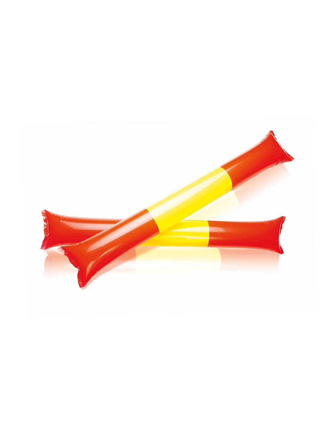 Par de bastom sticks/aplaudidores en resistente y ruidoso material LDPE de diseño España. Reutilizables y con válvula de inflado incluida. Reutilizable. Válvula Inflado Incluida