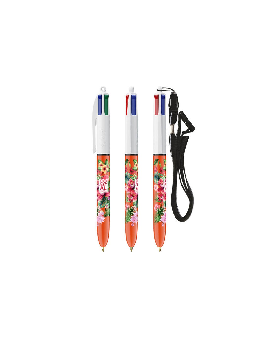 Bolígrafos Bic 4 colores fine promocionales con lanyard