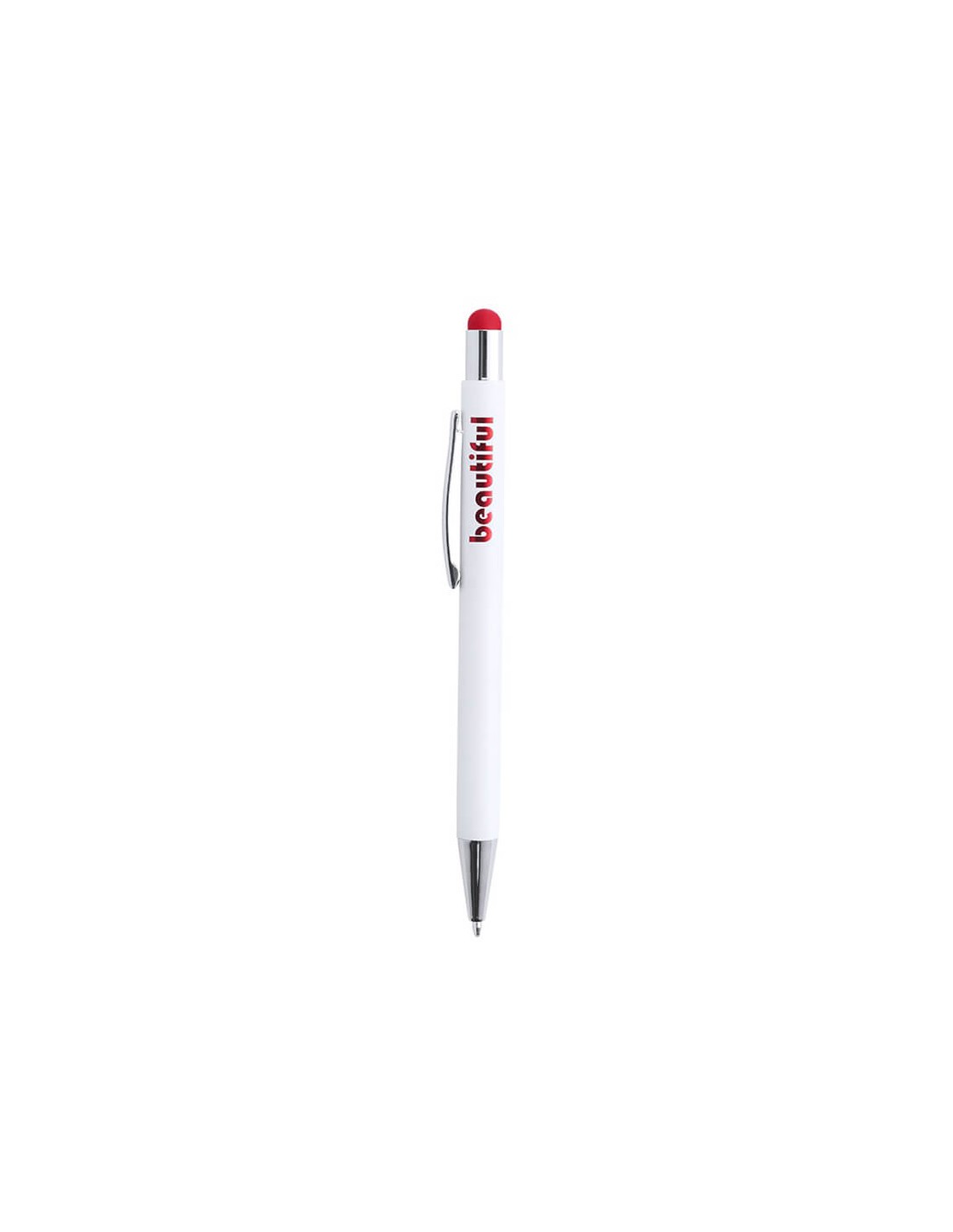 Bolígrafos de aluminio en color blanco con clip metálico y pulsador disponible en más de 5 colores