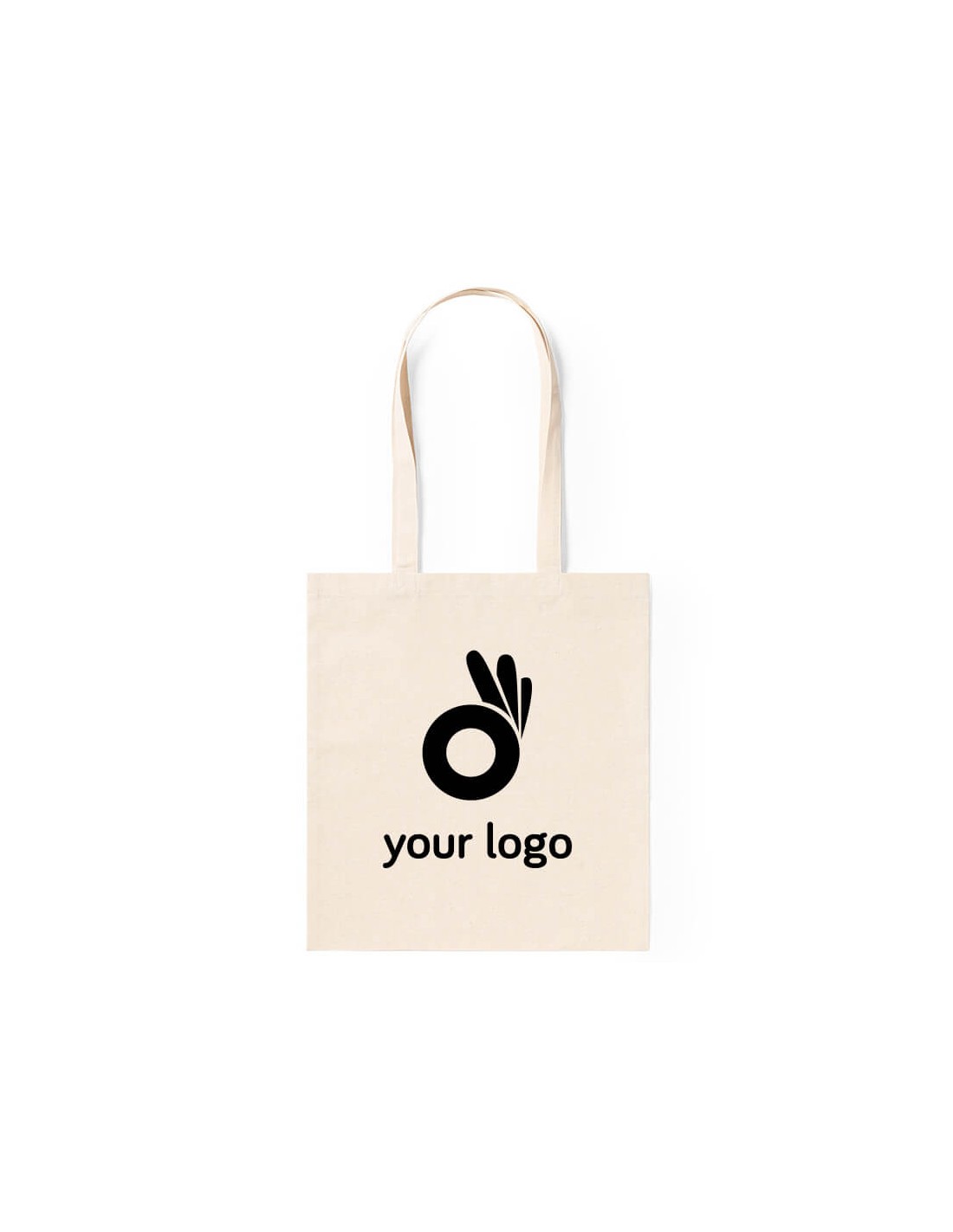 Bolsas de algodón básicas con las asas largas y capacidad de 140 gr/m2. Nuestro modelo básico es sencillo pero ideal para darte a conocer. Su estética simple hace que cualquier logo o texto que añadas se vea de forma clara y no hay ningún elemento que pueda dificultar su visibilidad. Disponible en color beige. Material: 100% algodón Medidas: 38 x 42 cm Peso: 46 g Fabricación: China
