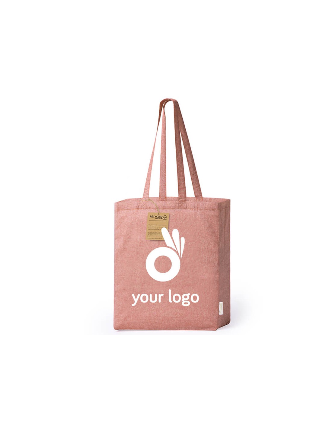 Bolsa en material 100% algodón reciclado de 140 g/m2. Asas largas de 70cm con refuerzo, de acabado cosido y fuelle. Logotipo en etiqueta lateral y resistencia hasta 8 kg de peso. Disponible en variada gama de colores nature.