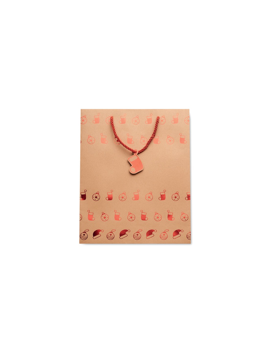 Elegante bolsa de papel kraft de regalo con estampado navideño. Etiqueta de regalo incluida. 250 gr/m².