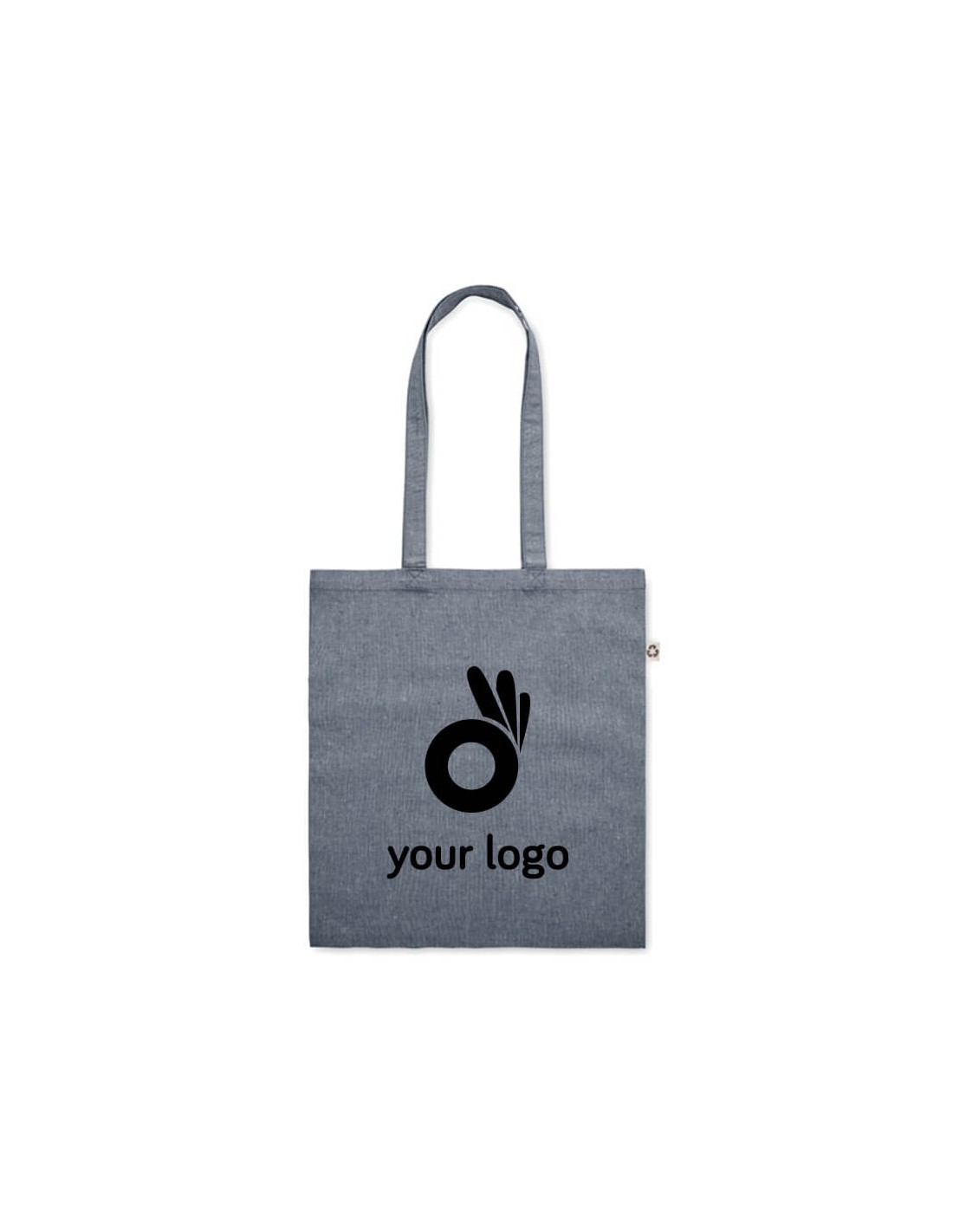 Bolsa de la compra de algodón reciclado (80% algodón reciclado, 20% algodón) con asas largas. 140 gr/m².