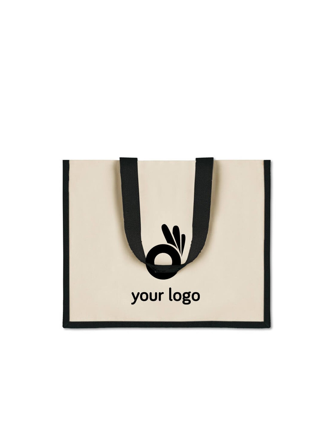 Bolsa de la compra en canvas y yute con interior laminado y asas largas de algodón.