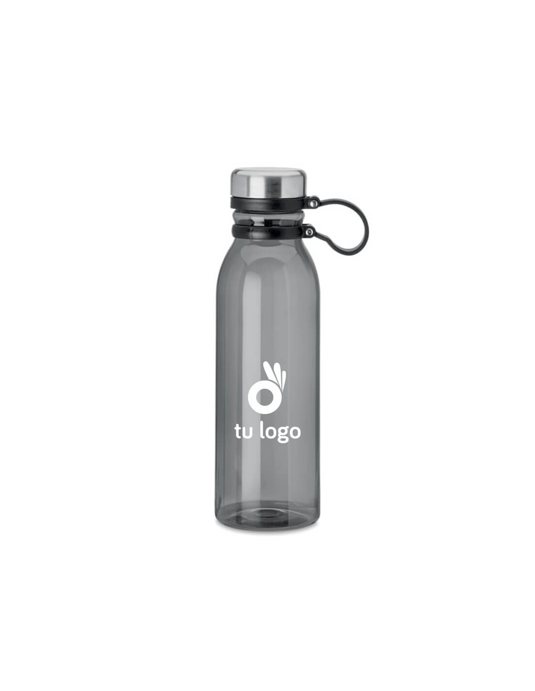 Botellas de agua fabricadas en RPET con una capacidad de 780 ml. Cuentan con un tapón de acero inoxidable antifugas que previene cualquier derrame o vertido del líquido interior. También disponen de un agarre TPR que facilita en gran medida su transporte. No contienen BPA, de modo que se pueden reutilizar tantas veces como se quiera sin que su material se deteriore ni emita partículas tóxicas. Están disponibles en más de 5 colores distintos, todos ellos visualmente atractivos para que, juntamente con tu logotipo serigrafiado en ellas, puedas dar a conocer tu empresa de manera efectiva, original y económica. Material: RPET sin substancias contaminantes (BPA Free) Medidas: Ø7 x 24,5 cm Peso: 158 g