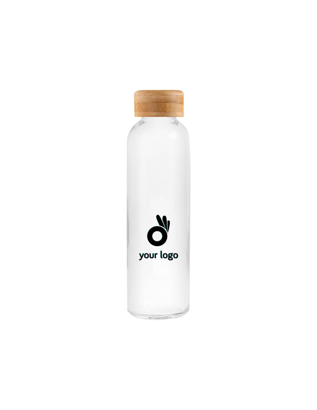 Botellas hechas de cristal con una capacidad de 500 ml. El tapón de este modelo está realizado en madera natural de bambú, lo que crea un diseño especial y único con el que podrás sorprender a tus clientes o empleados.