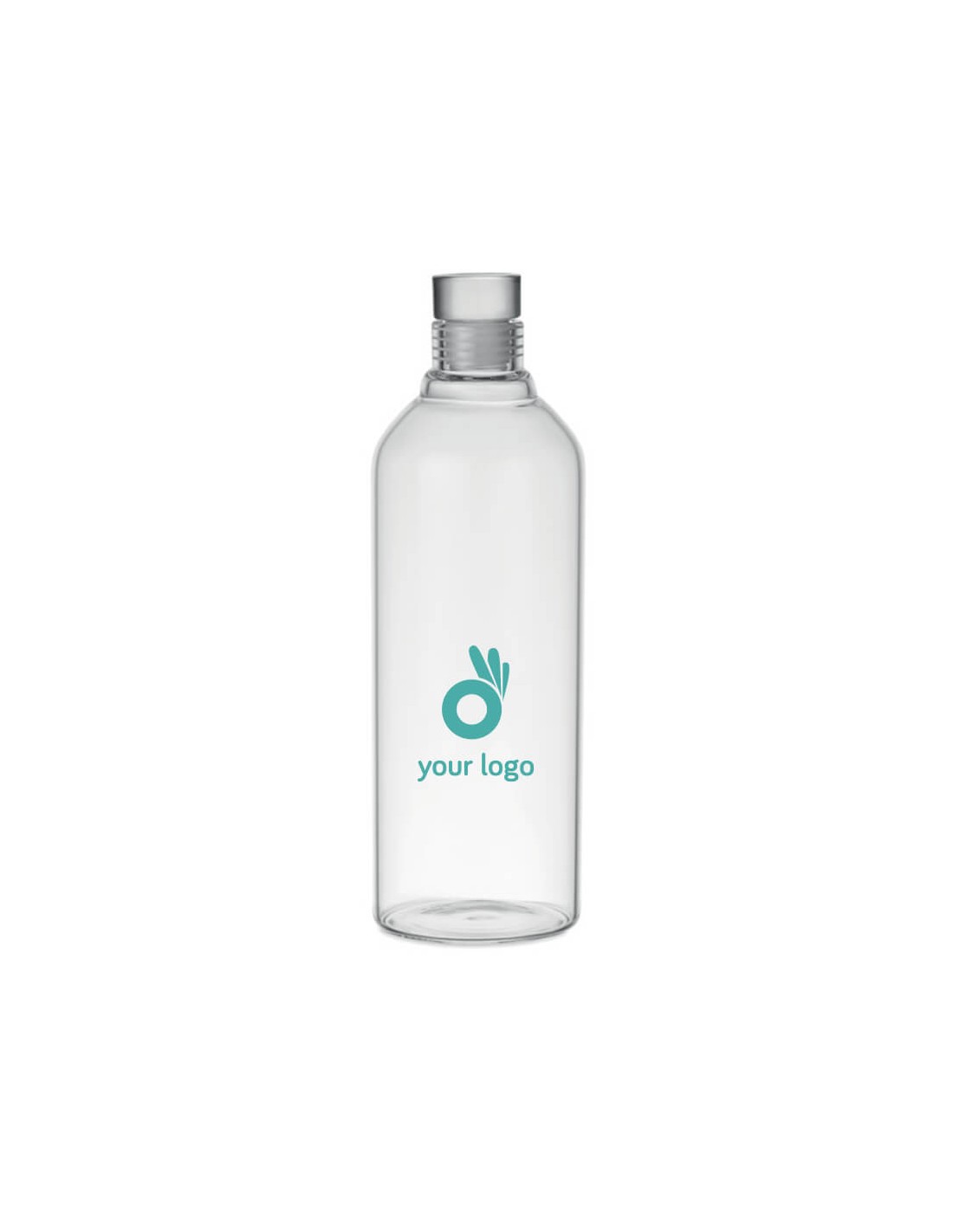 Botella grande de vidrio de borosilicato con tapón de vidrio. Anti fugas. Presentado en una caja tubular. Capacidad: 1 L.
