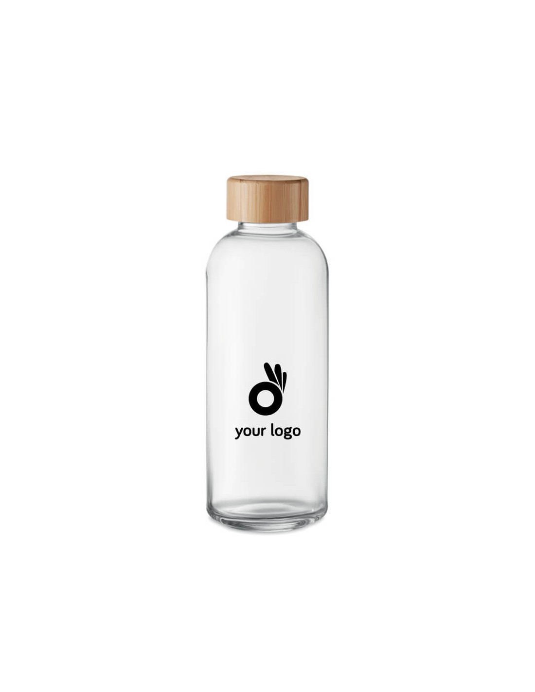 Botella de vidrio con tapa de bambú. Capacidad 650 ml. Anti fugas.
