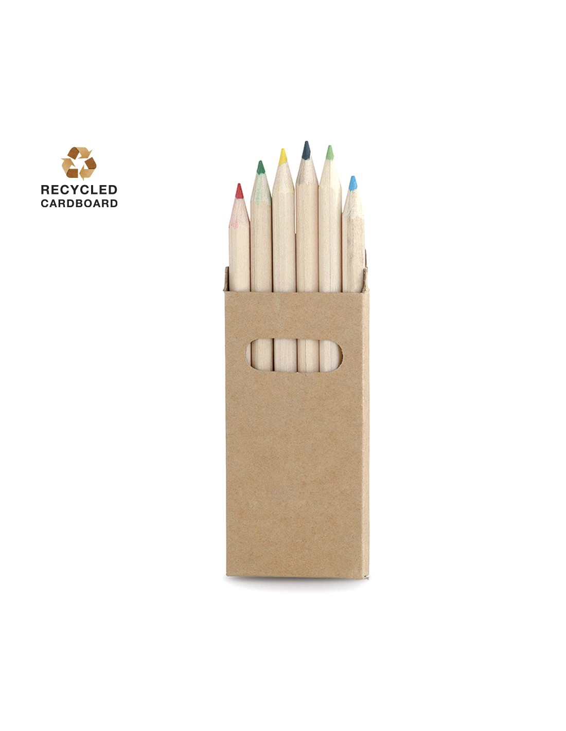 Cajas de 6 lápices de colores de madera fabricadas en cartón natural con ventana