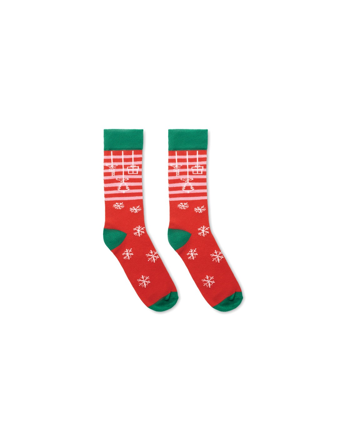 Par de calcetines con motivos navideños en 75% algodón, 23% poliéster RPET y 2% spandex. Presentados en caja de regalo. Talla M = 38-42.