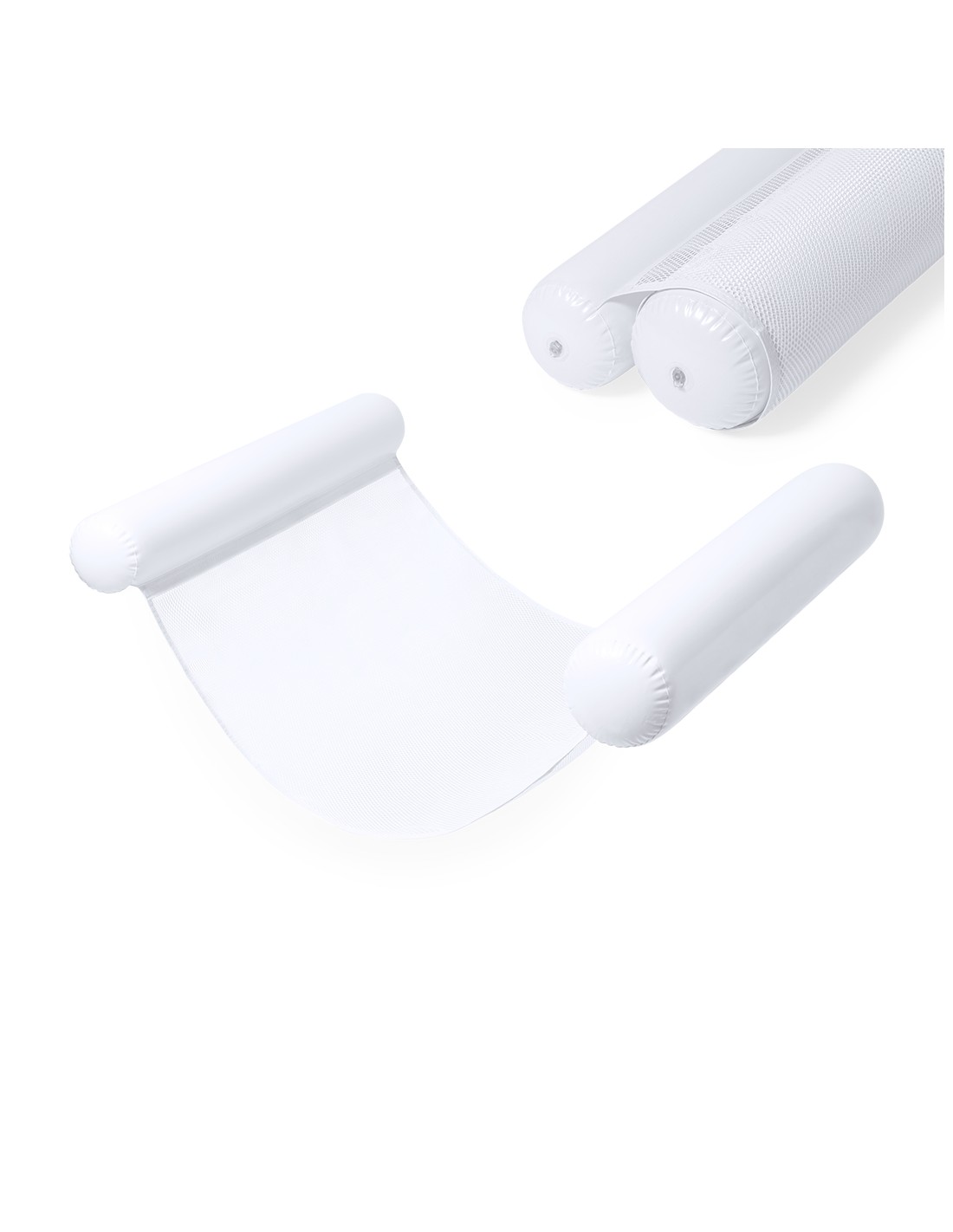 Original colchoneta con extremos hinchables en resistente PVC. Enrollable y con resistente redecilla central de 80x70 cm en poliéster de color blanco. Con plegado especial para fácil impresión y disponible en variada gama de colores. Plegado Especial para Impresión