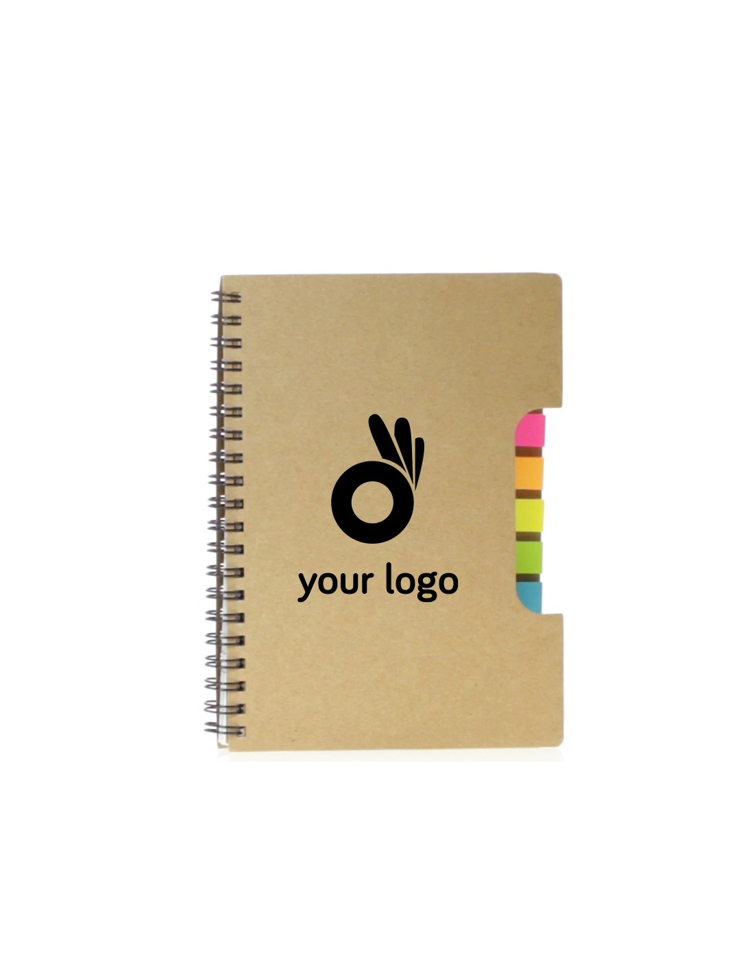 Cuadernos publicitarios con tapa realizada en cartón reciclado y de tamaño A5. Estos cuadernos tienen la peculiar característica de que su portada está troquelada y muestra los colores de las notas adhesivas que incorpora en su interior. En total, dispone de un bloc de notas con 60 hojas y 125 notas adhesivas pequeñas para realizar anotaciones rápidas en cualquier lugar. Se puede personalizar la tapa del cuaderno con cualquier imagen o logotipo para promocionarse en eventos o congresos. Disponibles en color marrón. Material: Cartón Reciclado Medidas: 14,6 x 17,7 x 1,7 cm Peso: 130 g Papel: rayado