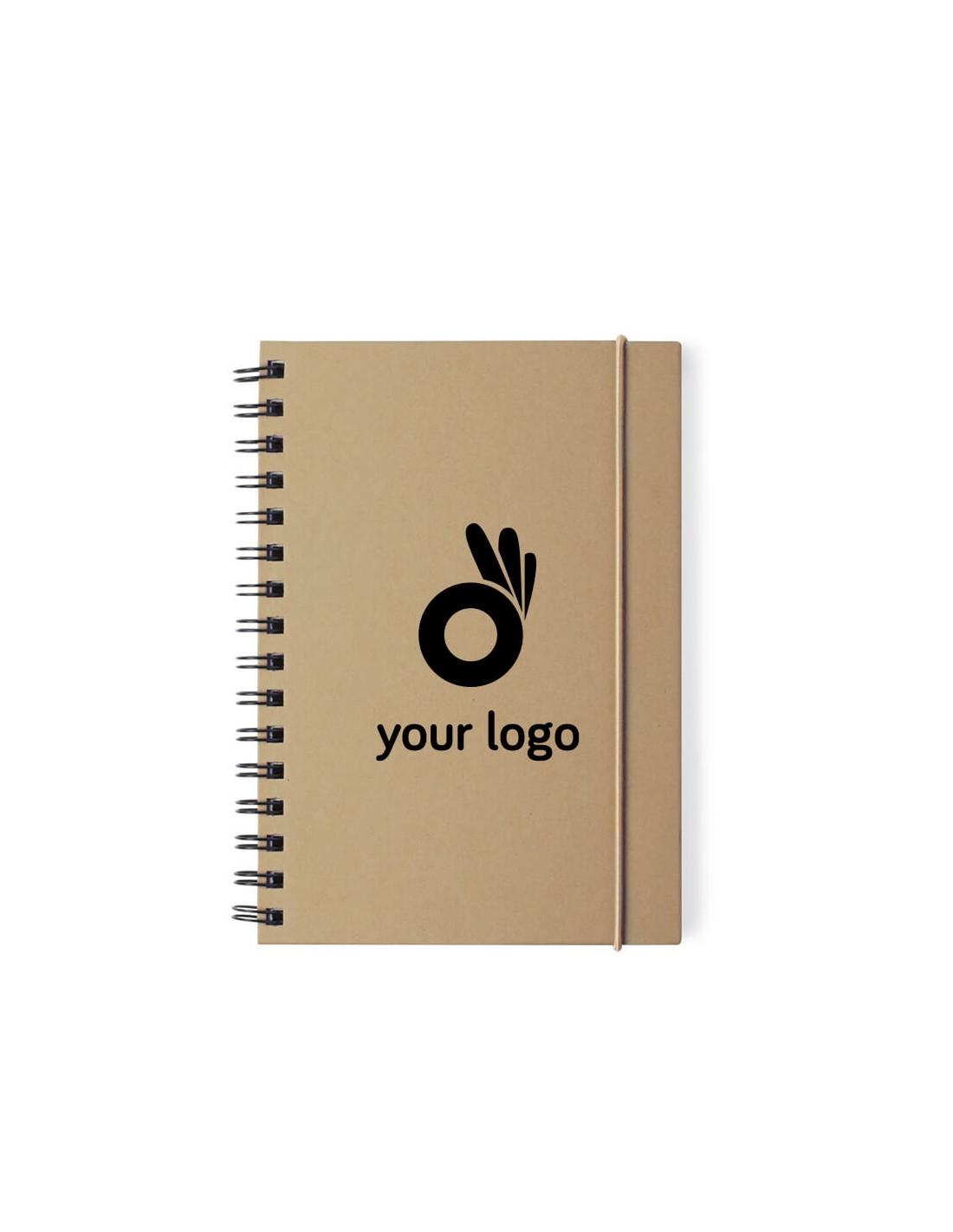 Libreta con anillas de color en línea nature. Con tapas rígidas en cartón reciclado y elástico de cierre en colores naturales. Con 80 hojas de disposición a una raya y diseño eco. Portada Rígida. 80 Hojas