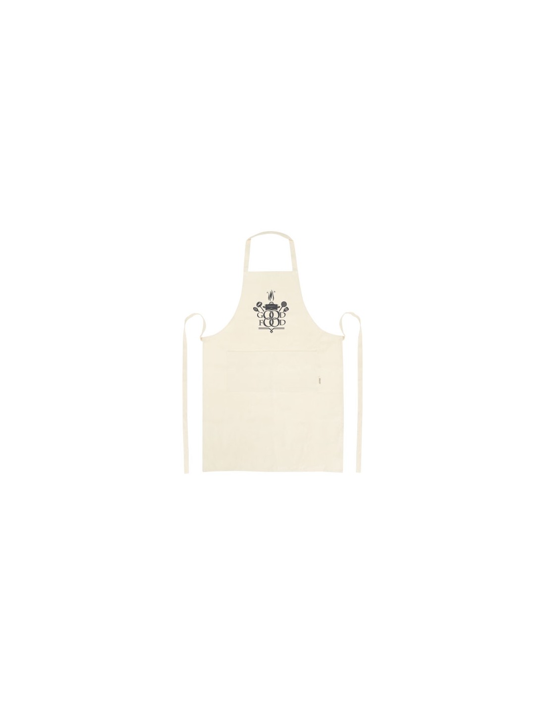 Delantal de material sostenible fabricado en algodón orgánico con certificado GOTS de 200 g/m². Dispone de 2 bolsillos adyacentes con un tamaño combinado de 45 x 20 cm, y una cinta de 1 metro para atarlo en la parte trasera. Longitud de la cinta para el cuello: 55 cm.