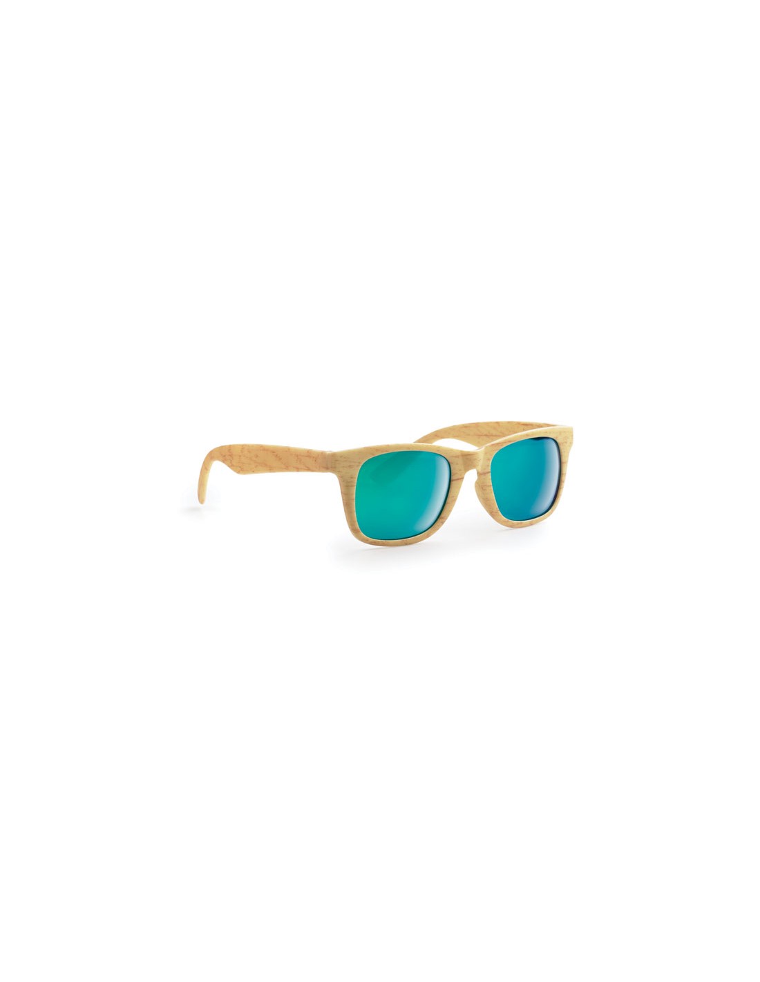 Gafas de sol clásicas en PC con acabado efecto madera y lentes de espejo. Protección UV400.