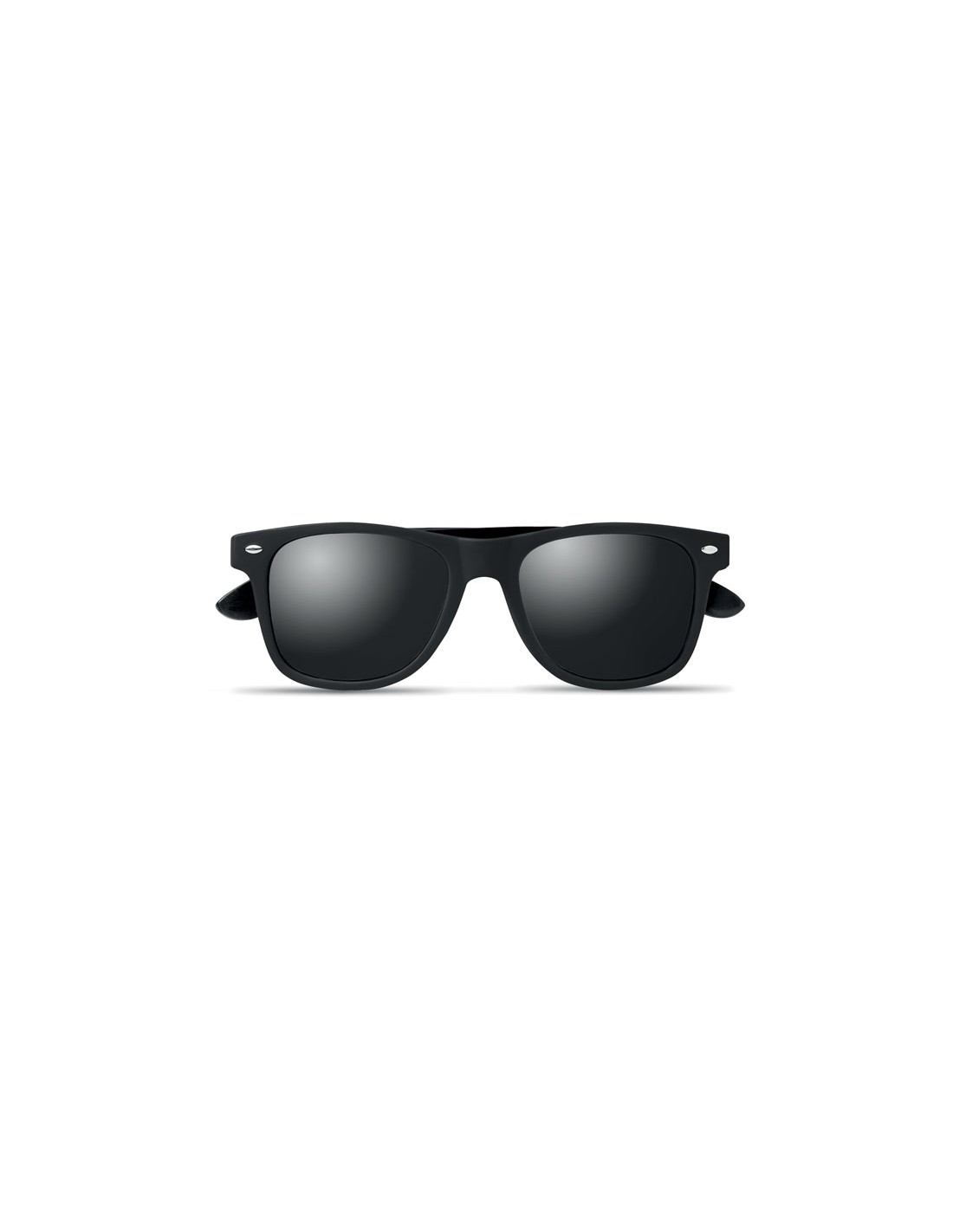 Gafas de sol negras y patillas con un recubrimiento de bambú y lentes efecto espejo. Protección UV400. El bambú es material natural, el color del articulo puede variar.