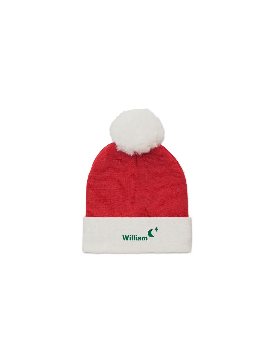 Gorro navideño de punto con puño y borla en poliéster PET.