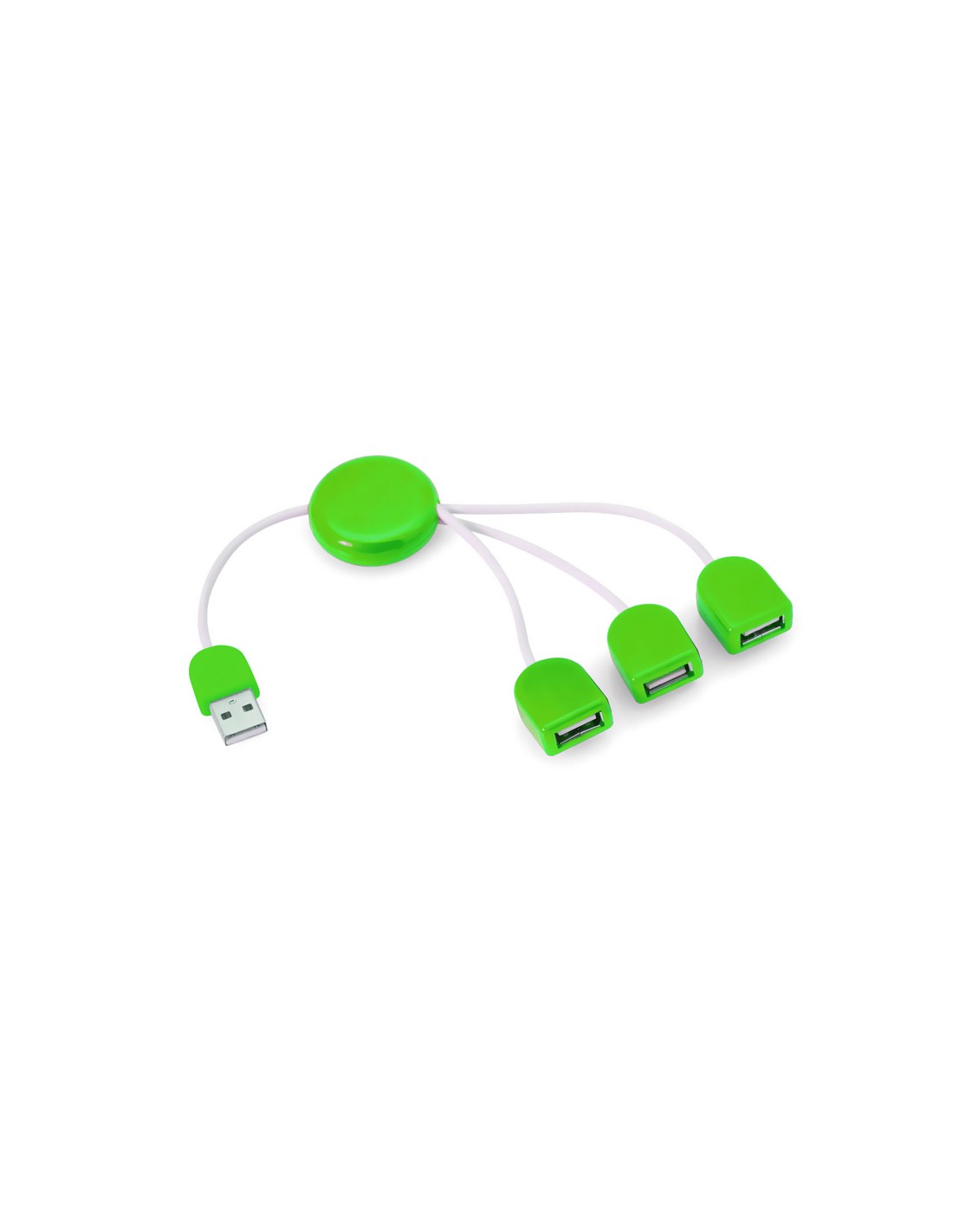 Puerto USB 2.0 en vivos colores con accesorios a juego. Con 3 puertos USB y pastilla circular lisa para marcaje. Presentado en caja individual negra. 3 Puertos. USB 2.0