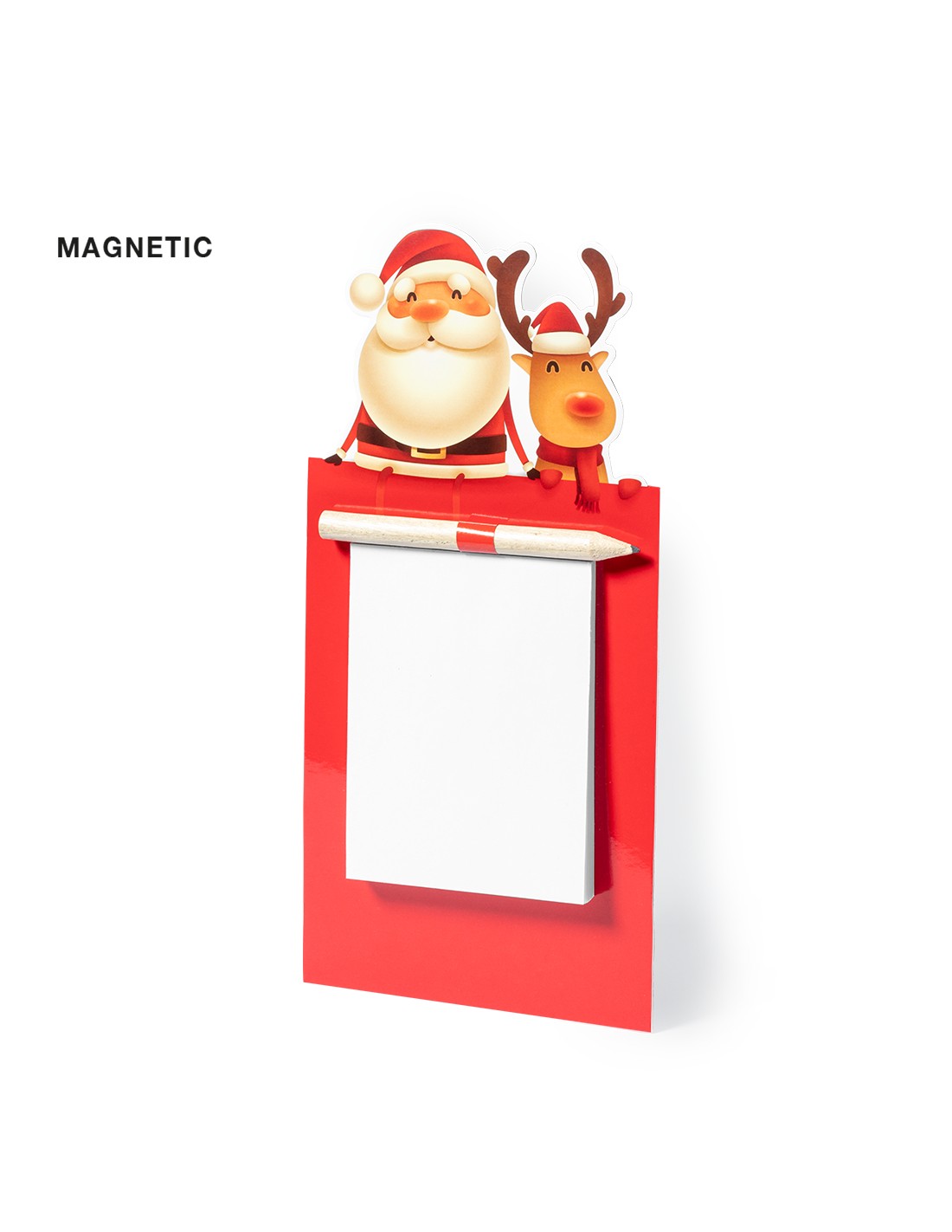 Imanes con diseño de reno y Papá Noel, bloc de notas y lápiz