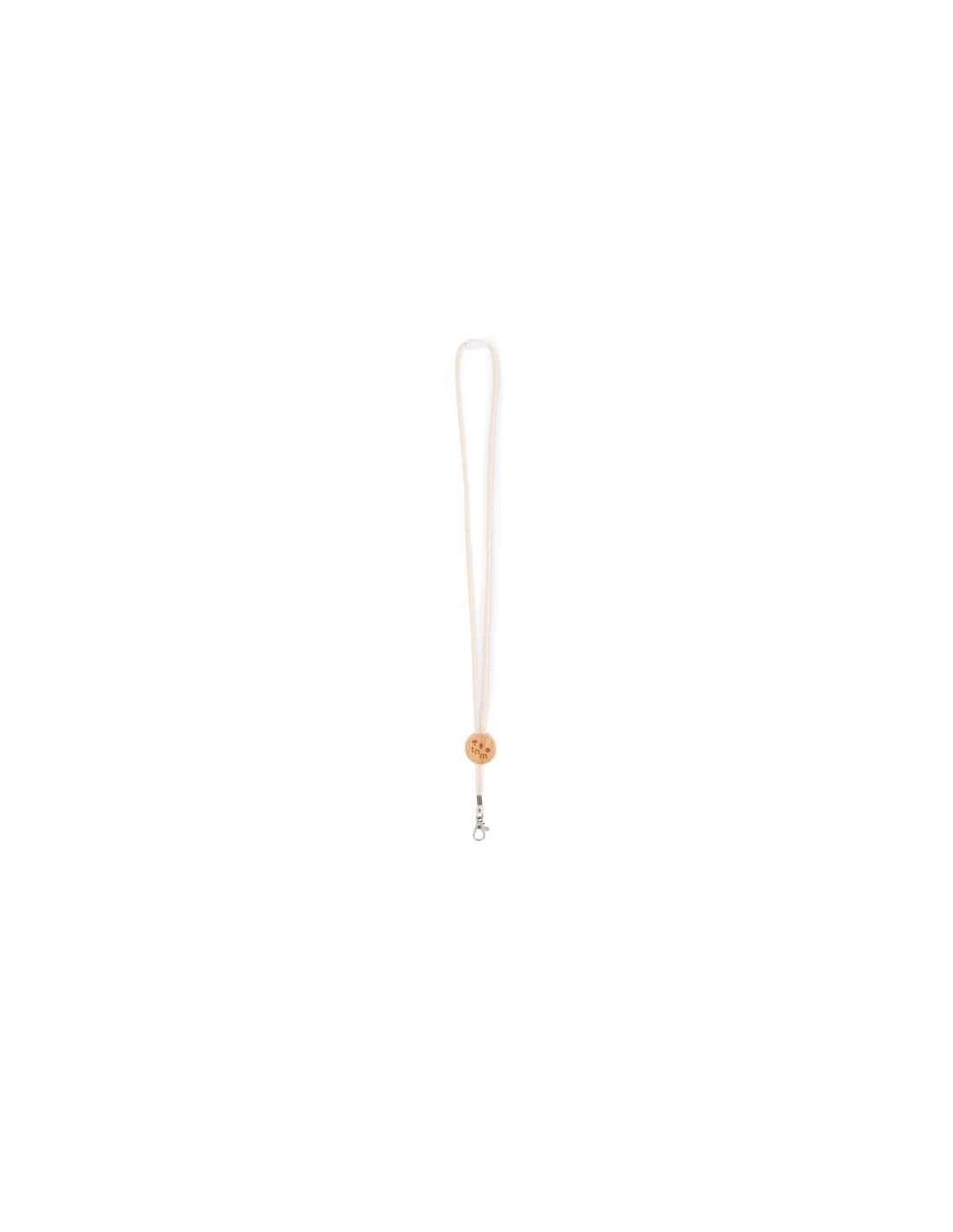 Lanyard de algodón con detalle de bambú redondo, mosquetón metálico y cierre de seguridad. Longitud: 50 cm.