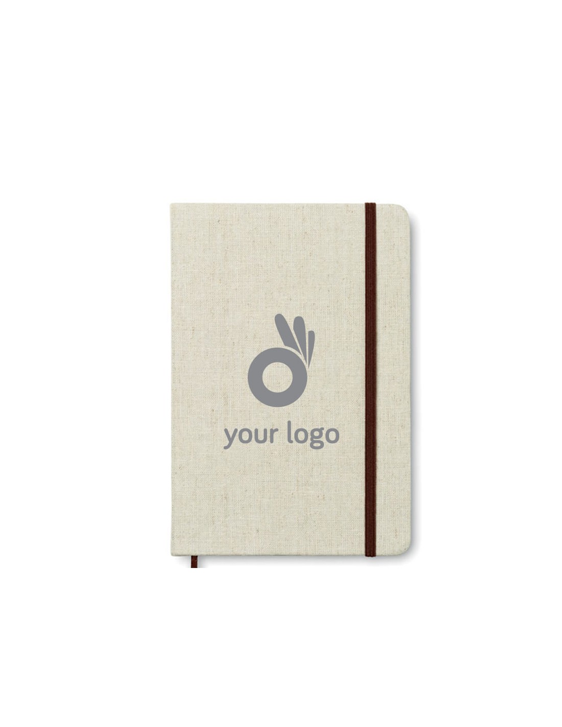 Libreta A5 con tapa de canvas. 96 hojas rayadas. Banda elástica y marca páginas.