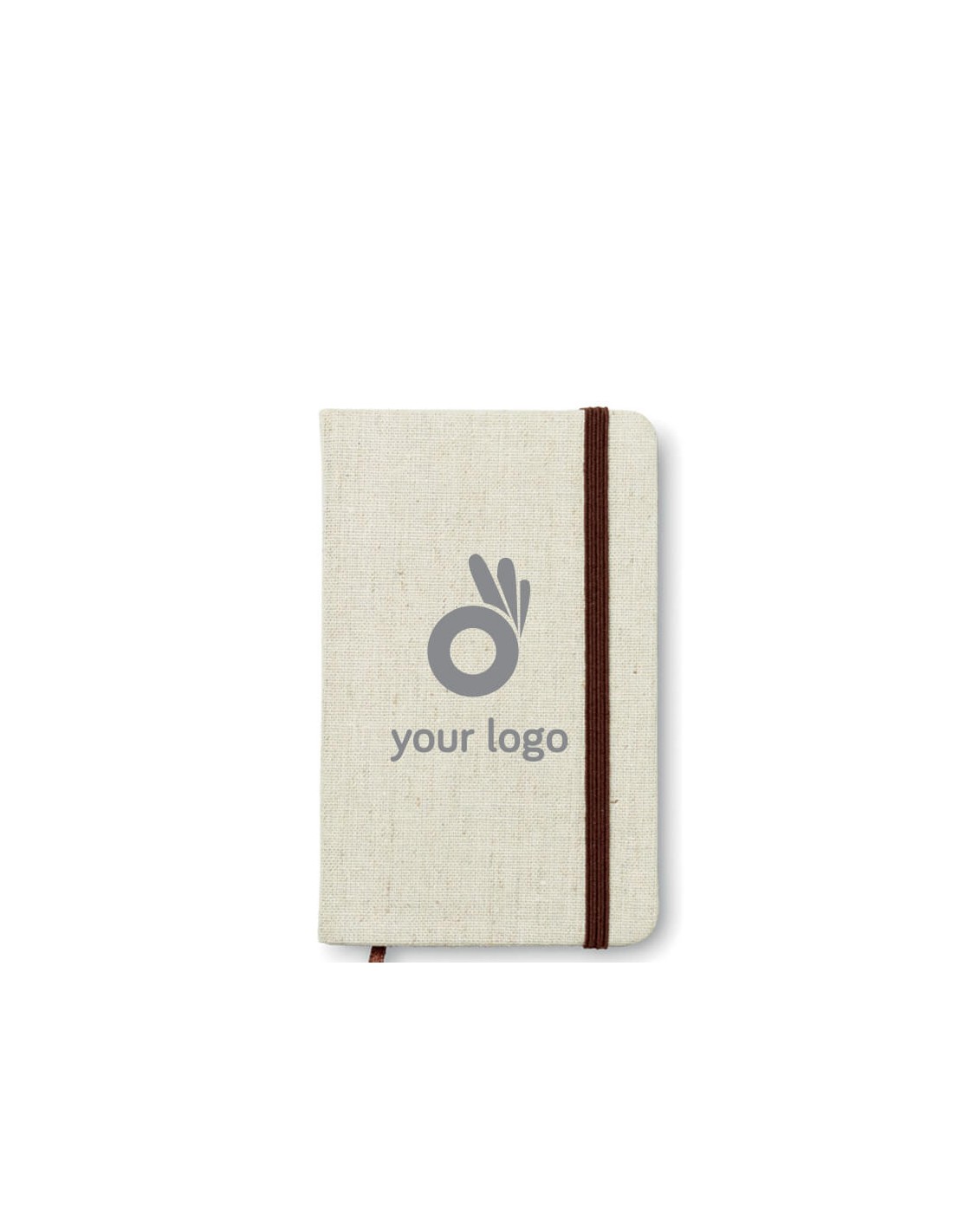 Libreta A6 con tapa de canvas. 96 hojas rayadas. Banda elástica y marca páginas.