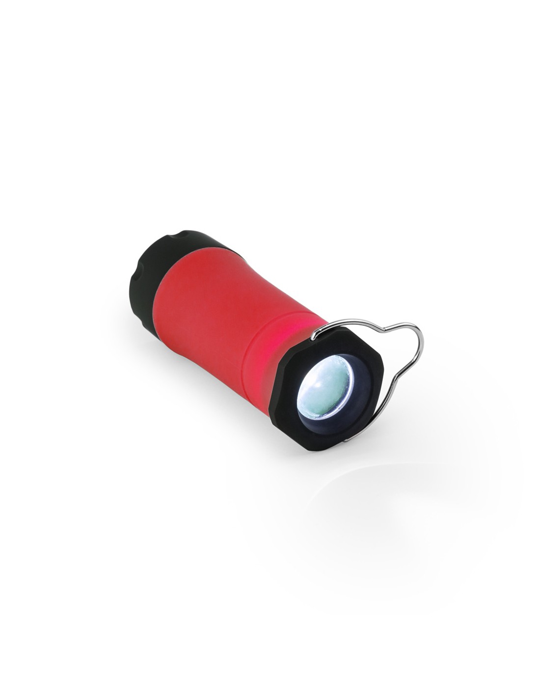 Linterna de acampada en bonito diseño bicolor con cuerpo de suave acabado en vivos colores. Con luz led y asa metálica para colgar. Alimentación a pilas: 3xAAA no incluidas. Presentada en caja plateada con bolsa de seguridad de burbuja. 1 Led. 3 Pilas AAA No Incluidas