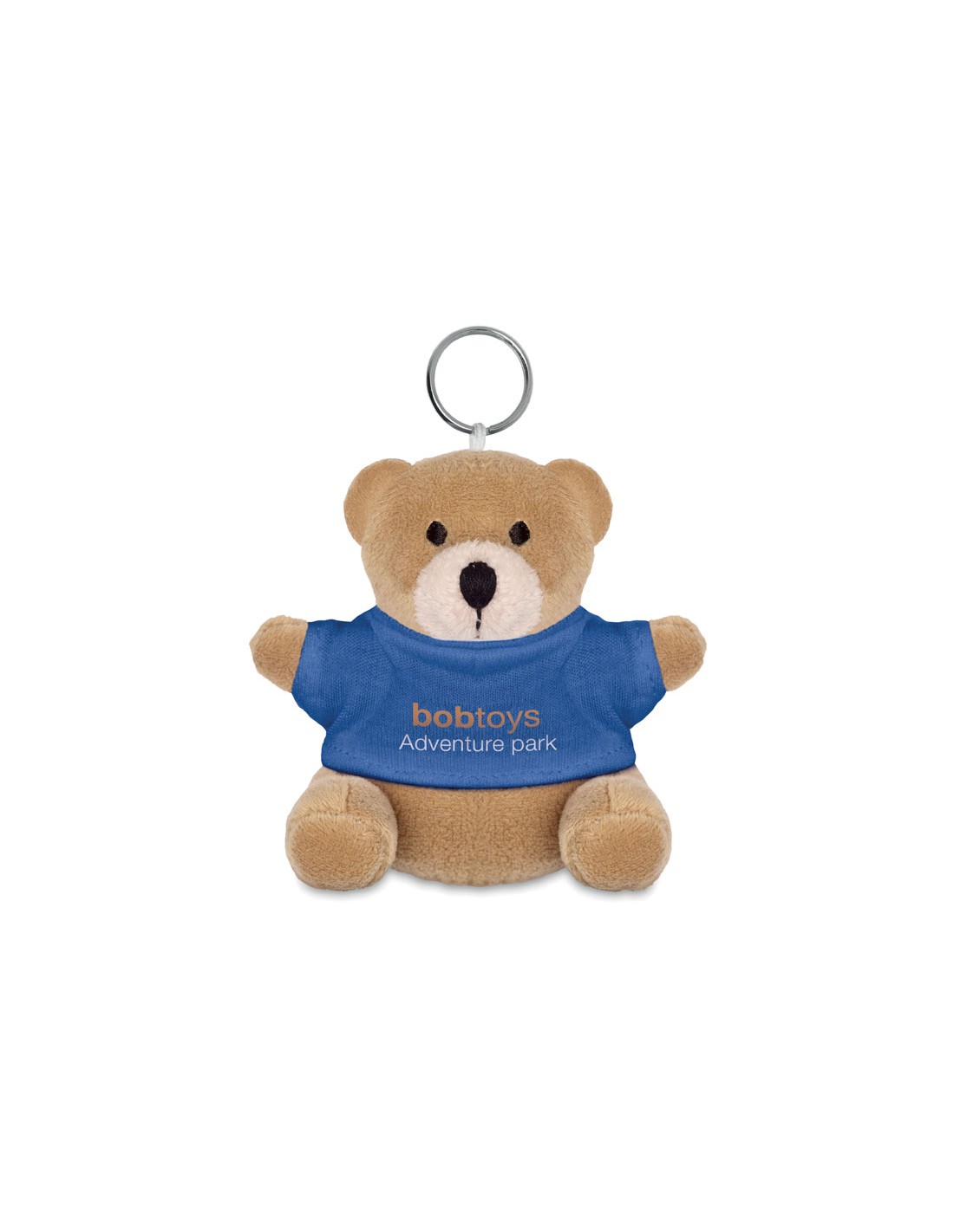 Llavero con osito de peluche. La camiseta es 100% algodón para imprimir el logo.