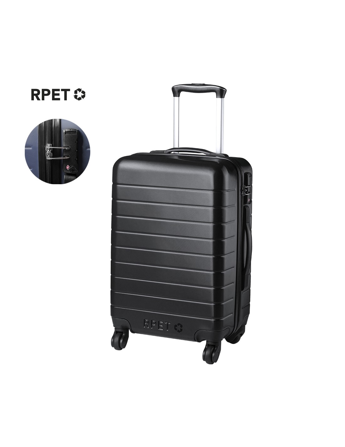 Trolley de cabina de línea nature resistente a los golpes, fabricado en material RPET elaborado a partir de plástico reciclado, para así fomentar la reutilización de residuos plásticos y contribuir a la sostenibilidad del planeta. Asa de transporte telescópica, con 4 ruedas giratorias y cierre de seguridad TSA. Forro interior en RPET, con cintas elásticas de sujeción incluidas. Distintivo RPET grabado en frontal. Rígido. 4 Ruedas Giratorias. Cierre Seguridad TSA
