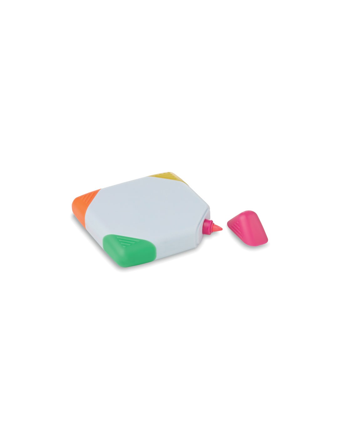 Marcador cuadrado 4 en 1 de ABS. 4 tintas : amarillo, fucsia, naranja, verde.