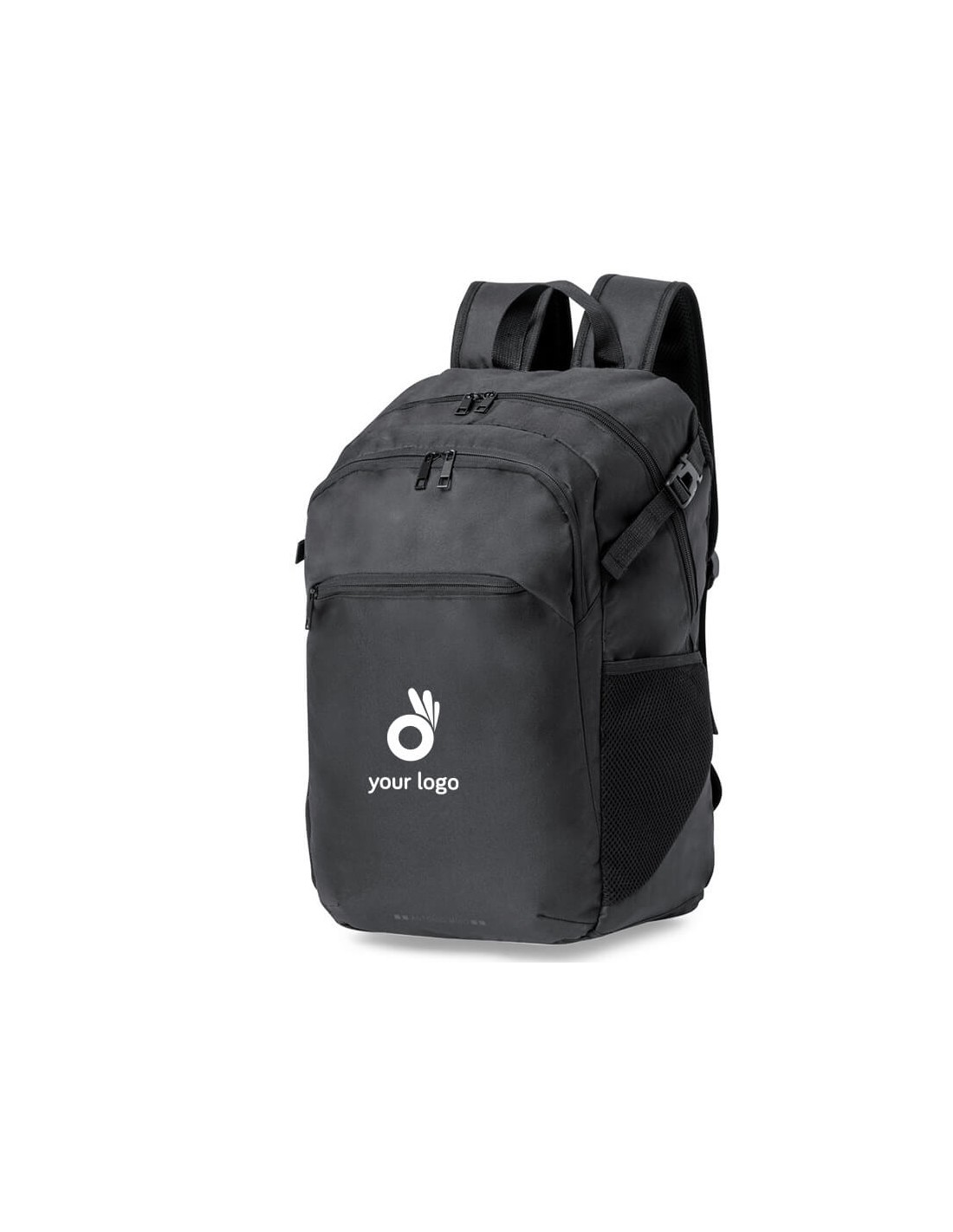 Mochila de Antonio Miró, fabricada en resistente poliéster 300D con acabados en negro. Compartimento principal y bolsillos exteriores con cierre de cremallera a juego; asa de transporte y bolsillos laterales. Cintas de ajuste laterales con cierre de hebilla y logotipo de la marca en la base. Compartimentos interiores acolchados para ordenador portátil de hasta 17 pulgadas y tablet de hasta 10 pulgadas. Parte trasera acolchada y cintas para hombros ajustables y acolchadas; con accesorio de ajuste en la parte trasera para barra de trolley. Bolsillo Acolchado para Portátil y Tablet. Parte Trasera y Cintas Acolchadas