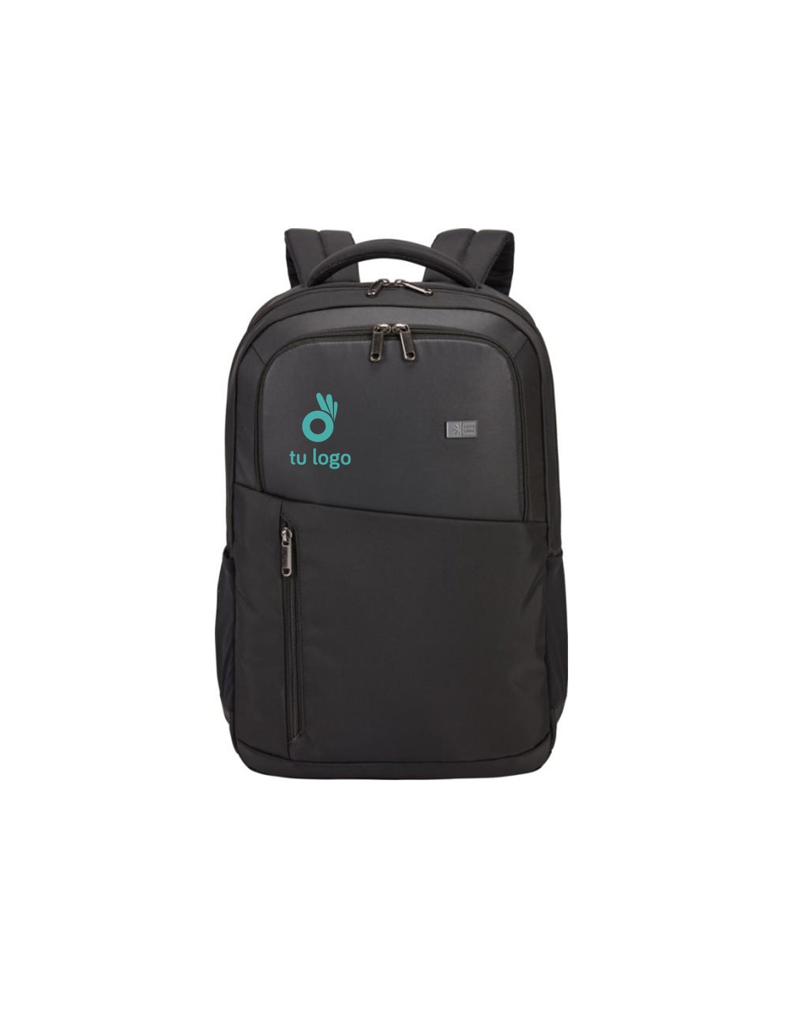 Mochilas Case logic personalizadas de diseño moderno y elegante fabricadas con poliéster de 420D. Estas mochilas incorporan un bolsillo principal con una gran capacidad de almacenamiento, un bolsillo acolchado para guardar y proteger un portátil de 15,6", un bolsillo para una tableta de hasta 12" y un bolsillo frontal para guardar objetivos pequeños. Disponible en color negro. Material: Poliéster 420D Medidas: 31 x 24 x 44 cm Peso: 870 g