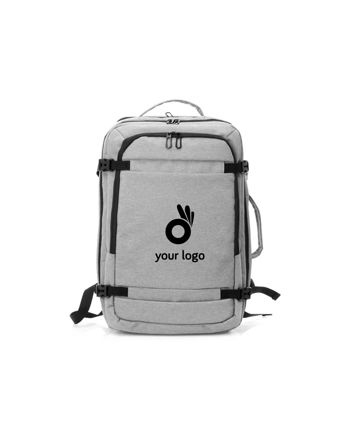 Mochilas personalizadas fabricadas en poliéster con compartimento para portátil de 17'' pulgadas. Tienen bolsillo antirrobo.