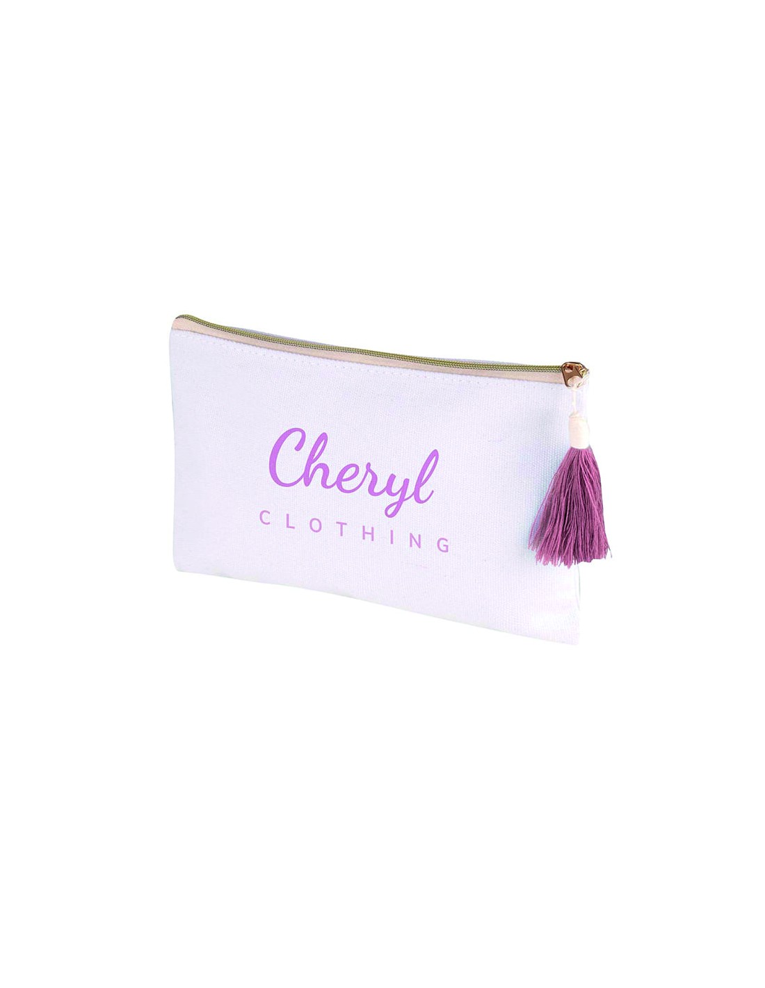 Neceseres promocionales de algodón con una cremallera metalizada y una borla decorativa en la cremallera. La borla esta disponible en tres colores: azul claro, negro y rosa. Estos neceseres son de color blanco con la cremallera metalizada y tienen un tamaño ideal para poder llevarlos dentro de bolsos y mochilas pequeñas. Además, presentan un diseño elegante gracias a su borla decorativa, la cual puedes combinar con tu logo corporativo que añadas en la amplia zona de marcaje.