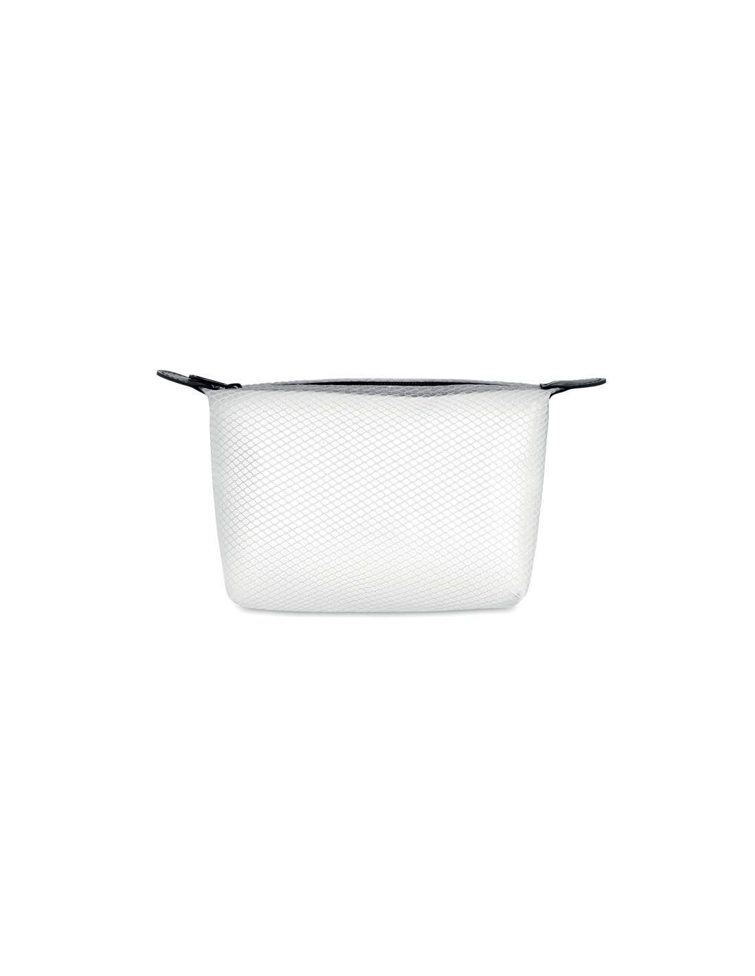 Neceseres personalizados fabricados con material translúcido de malla EVA que permite la leve visión del interior del neceser. Este resistente y elegante modelo incluye una cremallera de cierre en color negro, ideal para combinar con los diferentes colores en los que se encuentran disponibles estos neceseres. Los colores disponibles son el blanco, rosa, amarillo y azul claro. Material: Malla EVA Medidas: 19 x 7 x 14 cm Peso: 47 g