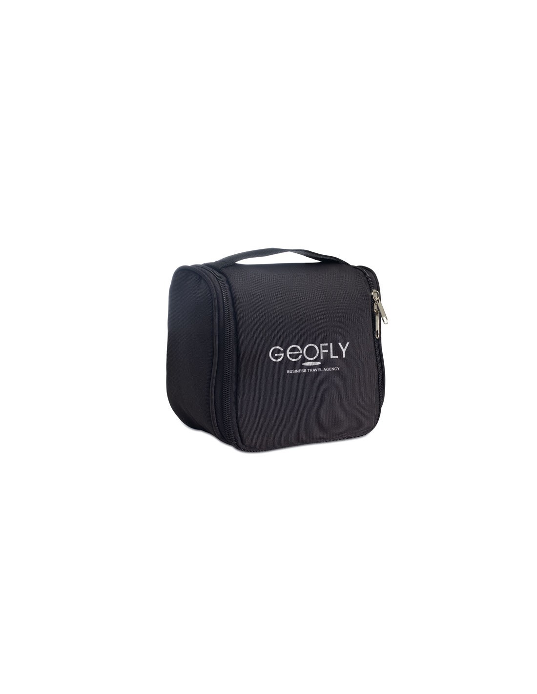 Neceser con multicompartimentos y bolsillo de malla, realizado en poliéster de alta densidad. Ideal como neceser de viaje.