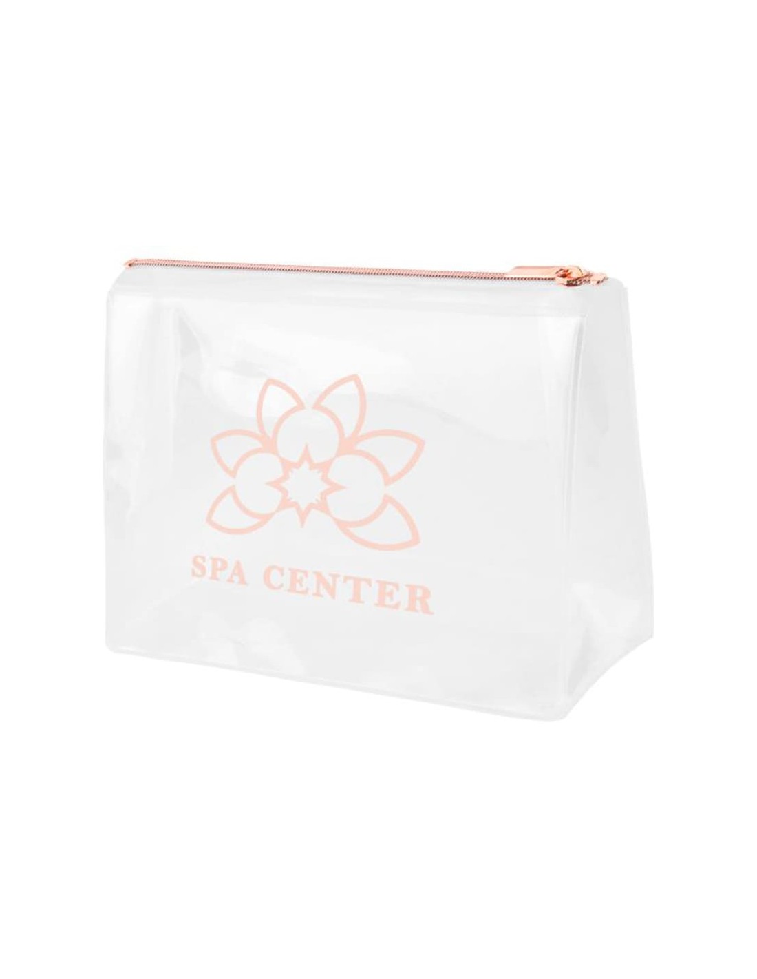 Neceseres promocionales transparentes fabricados en goma EVA con amplia capacidad de almacenaje. Disponen de un cierre de cremallera con acabado rosado metalizado, lo que proporciona elegancia al diseño de estos neceseres. Tienen una amplia capacidad para almacenar todo tipo de objetos y permite que estos sean visualizados desde el exterior. Añade tu logo y publicita tu negocio.