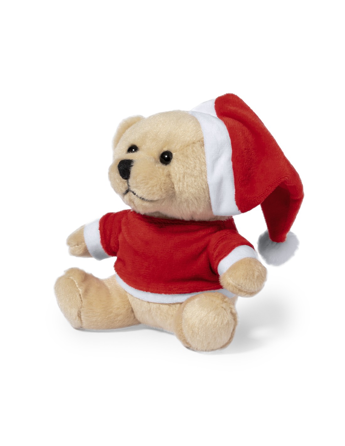 Osos de peluche con gorro de Navidad y camiseta personalizable. Presentación en bolsa individual reciclada