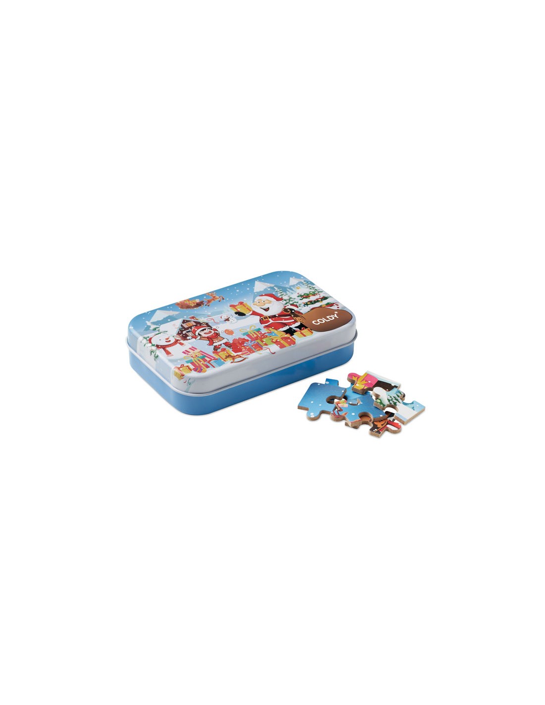 Puzzle de 60 piezas con motivos navideños en caja de lata.