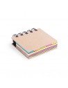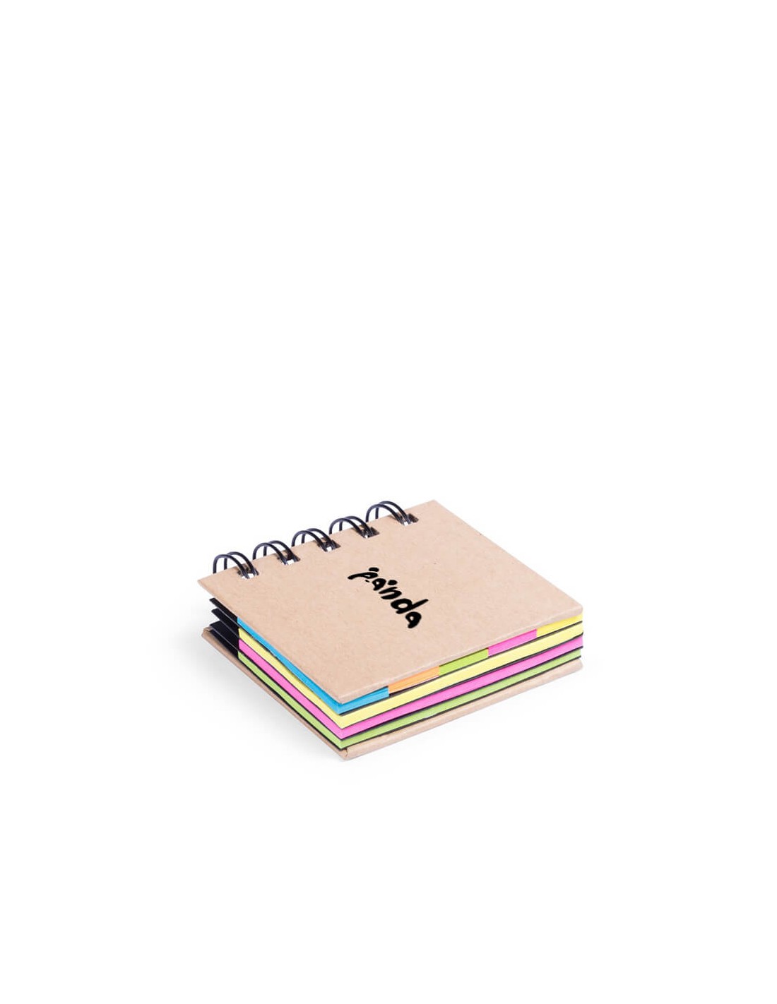 Set de notas adhesivas promocionales con tapas fabricadas de cartón de color a elegir entre blanco, negro, plata, marrón, azul marino y rojo. Sus bordes redondeados transmiten una impresión desenfadada y moderna que encaja en todo tipo de ambientes y con todo tipo de personas. En su interior, contienen cuatro tacos de notas adhesivas; tres de ellos son en forma triangular y de diferentes colores, mientras que el cuarto está situado en la parte central, es ligeramente más grande que los tres anteriores y es de color blanco. Con este regalo promocional podrás fidelizar a tus clientes e incorporar un producto de tu empresa en su vida cotidiana, de manera que te tendrán mucho más presente. Material: Cartón Medidas: 9,2 x 10,2 cm Peso: 1 g