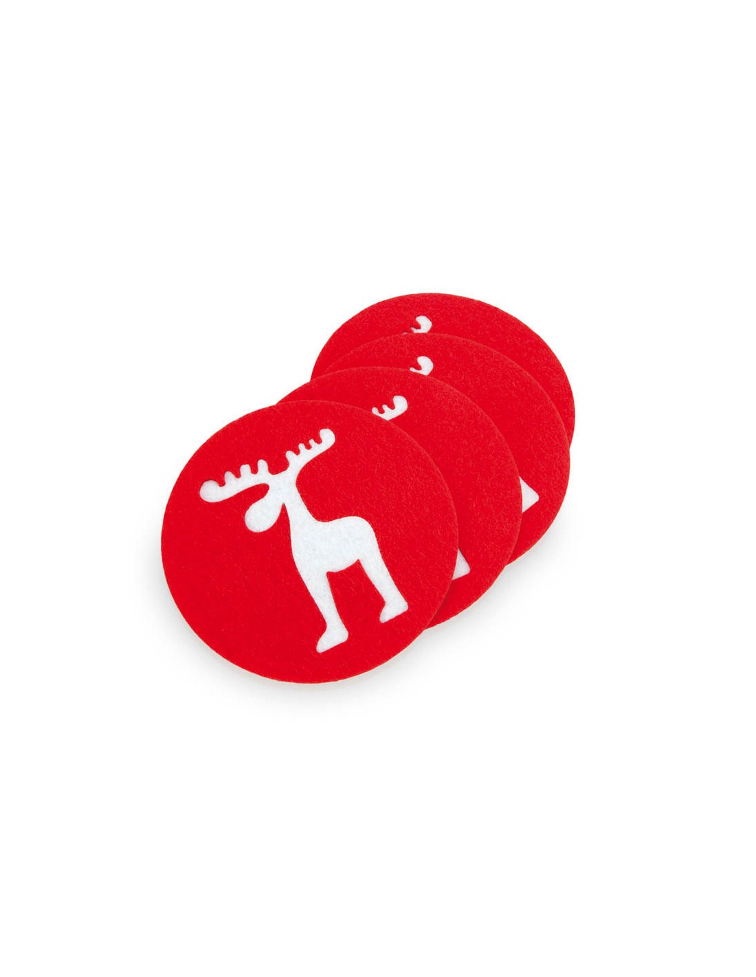 Set de 4 posavasos en suave y resistente fieltro con diseños troquelados de reno. 4 Piezas