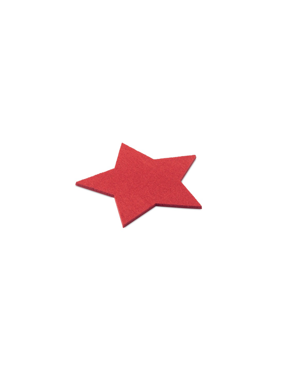 Juego de 4 posavasos de fieltro RPET en forma de estrella presentados en caja kraft.