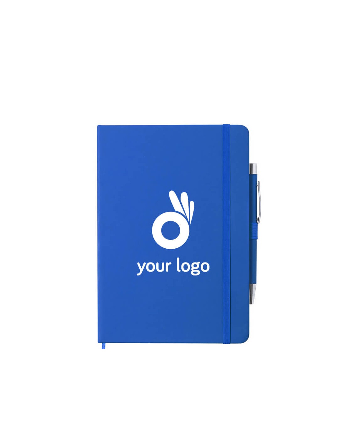 Set de bloc y bolígrafo a juego. Bloc de tapas rígidas con suave tacto acabado en polipiel, incluye soporte para bolígrafo, marcapáginas y cierre elástico, con interior de 100 hojas a una raya. Además, bolígrafo de aluminio en acabado goma con carga jumbo. Disponible en una variada gama de colores. Portada Rígida. 100 Hojas. Bolígrafo Aluminio Incluido. Carga Jumbo