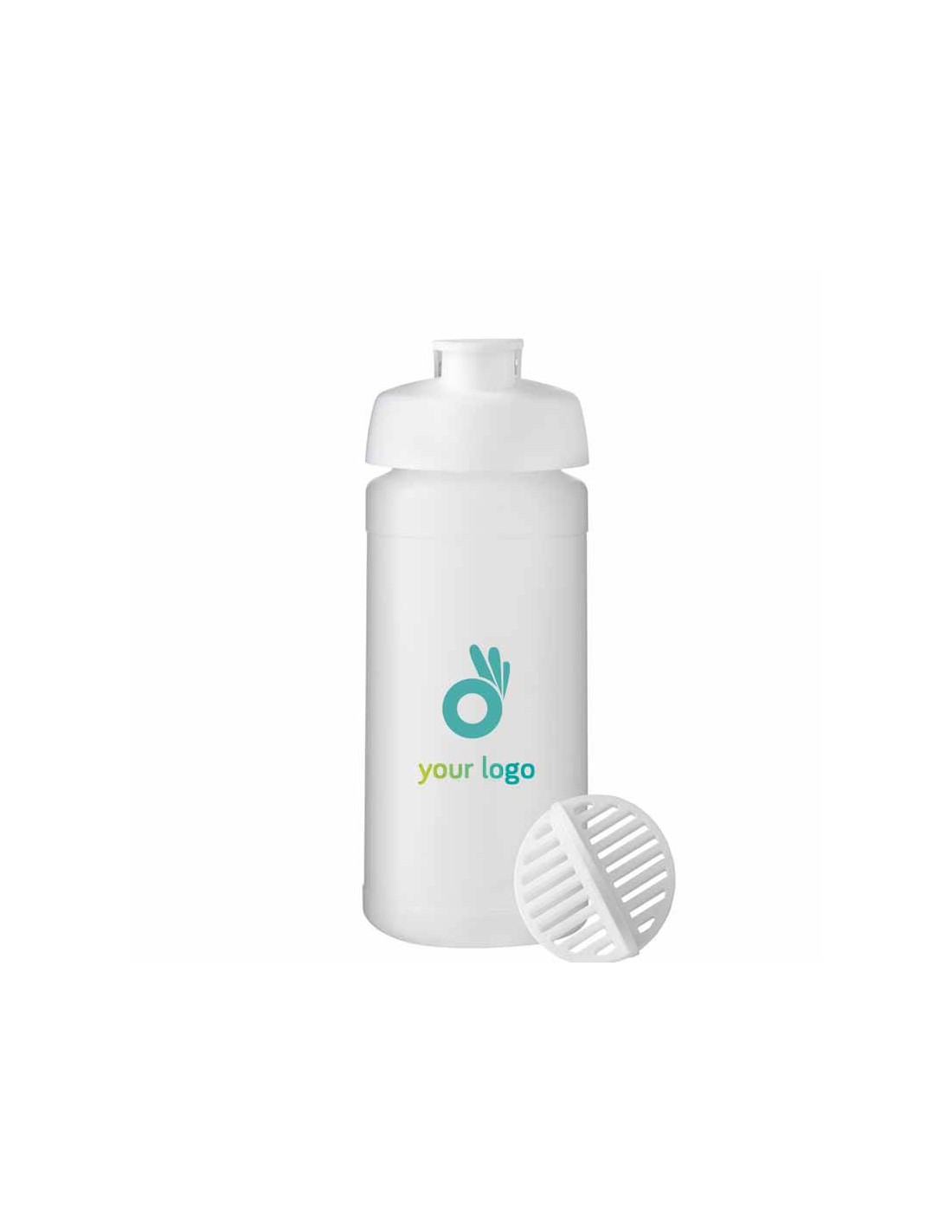 Shakers con logo "Baseline Plus" con capacidad de 500 ml. Estos shakers están fabricados con plástico HDPE y plástico PP. País de fabricación: UK. Incorporan una bola mezcladora, ideal para que los batidos queden perfectamente mezclados y sin grumos. Es ideal para empresas del sector de deporte o la nutrición deportiva, por ejemplo, gimnasios, gimnasios de entrenamiento funcional, centros de nutrición y dietética, entre otros. Material: Plástico HDPE y PP Medidas: 18 x 7,20 cm Peso: 72 g Capacidad: 500 ml