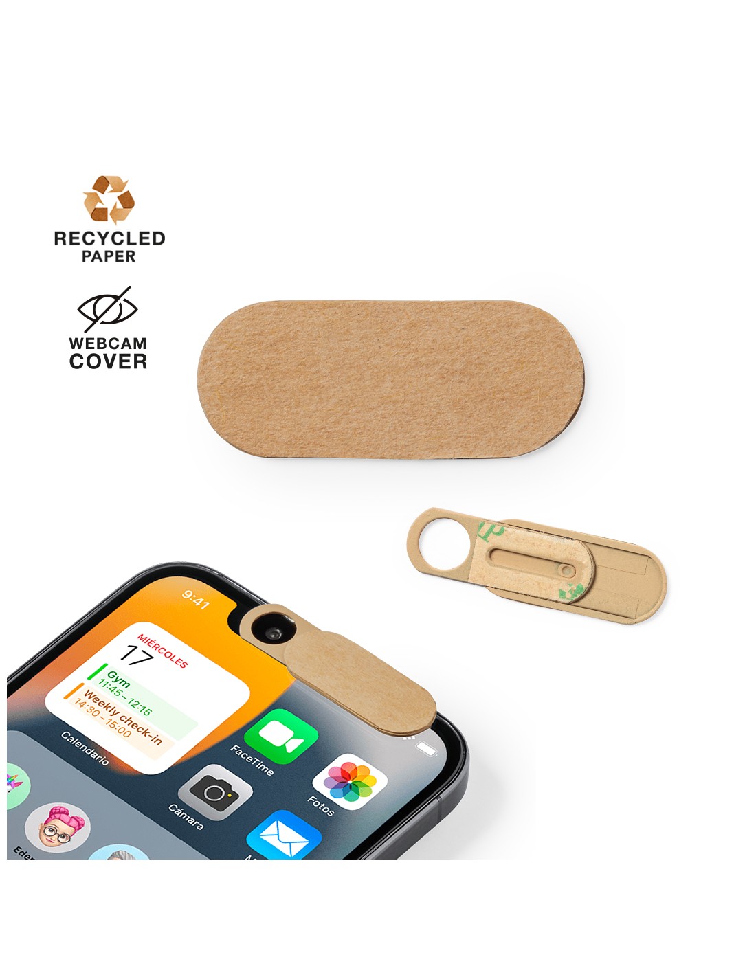 Tapa deslizante de línea nature fabricada en papel reciclado. Diseñada para cubrir la cámara de los dispositivos electrónicos y asegurar la protección de la privacidad. Con adhesivo 3M, de fijación extra fuerte y libre de residuos al despegarlo del dispositivo. Adhesivo