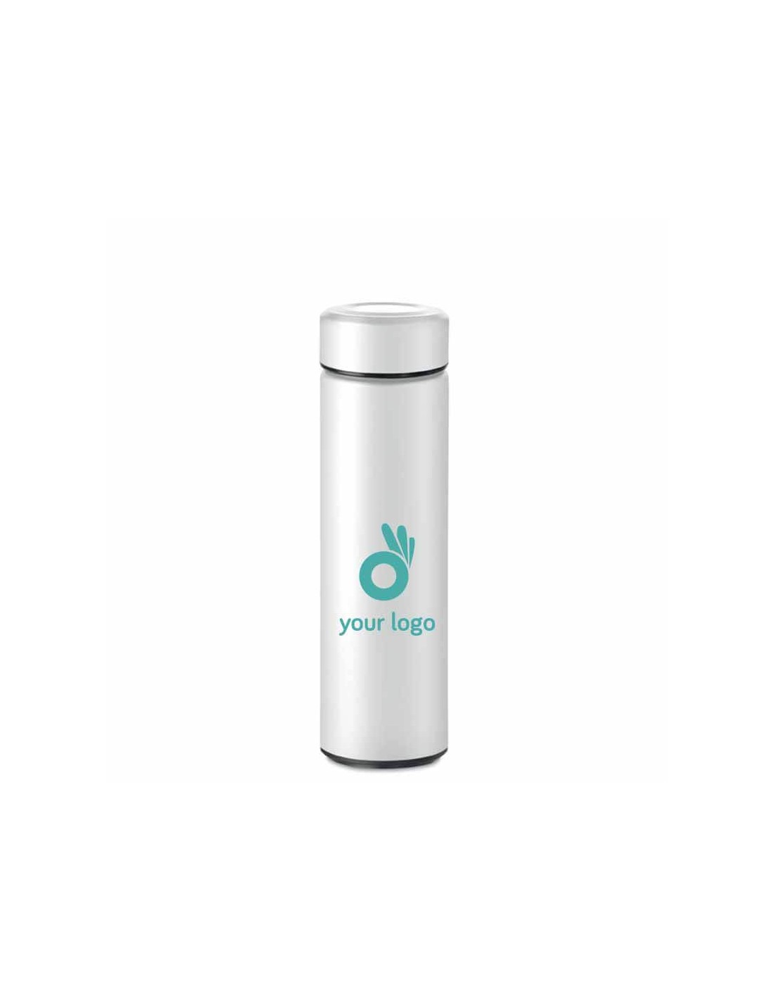 Botellas de agua publicitarias en forma de termo, con doble pared de acero inoxidable y con una capacidad de 425 ml. Estas botellas de agua tienen la principal característica de que funcionan como un termo, almacenando los líquidos sin que se altere su temperatura. Son ideales para la hora del café o del té. Además, su diseño es totalmente exclusivo, lo que hace que sea un producto más exclusivo. Se pueden personalizar con el logotipo de tu empresa para promocionar tu marca. Disponibles en color amarillo, blanco, negro, plata, naranja, azul claro, azul y rojo. Material: Acero inoxidable Medidas: 22,5 cm Diámetro: 6,00 cm Peso: 267 g Capacidad: 425 ml