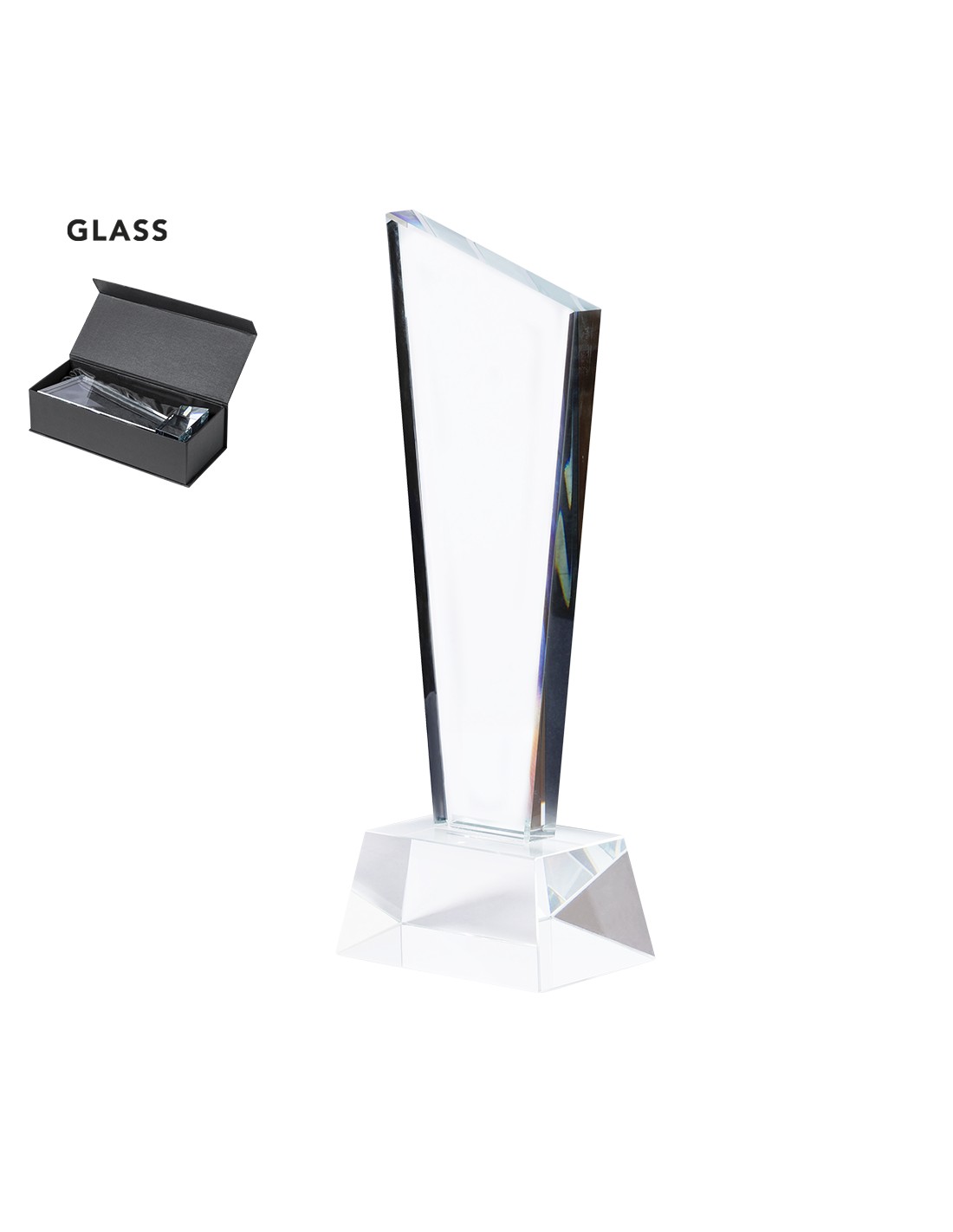 Trofeos personalizados de cristal resistente de diseño original con forma de pirámide invertida. Presentados de forma individual en un estuche de protección de cartón resistente y cierre magnetico. Material: Cristal Medidas: 8.2 x 23 x 5.8 cm Peso: 710 g